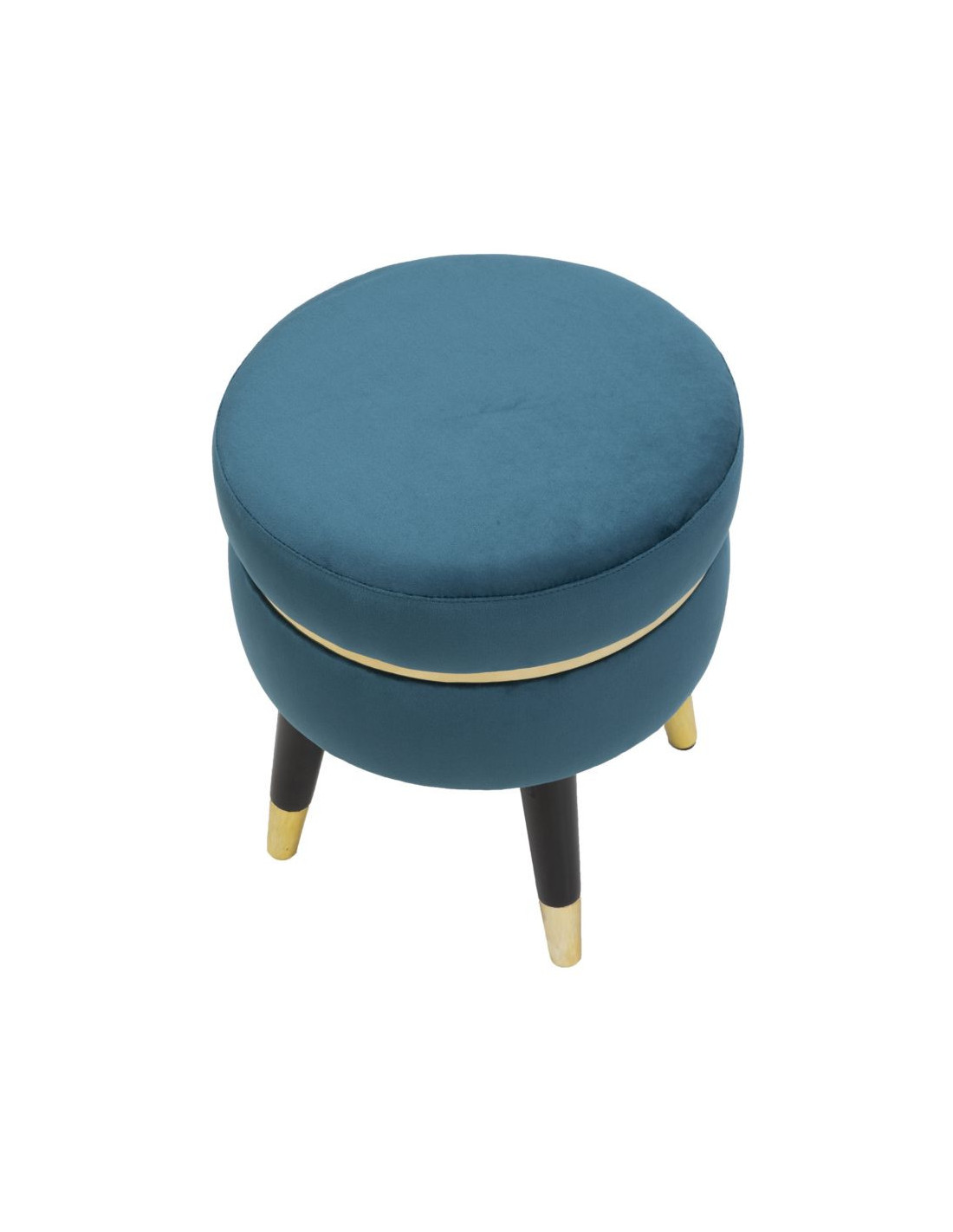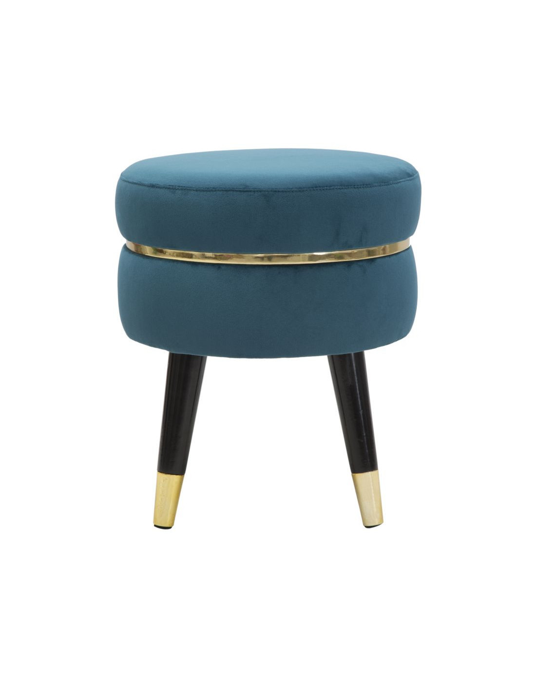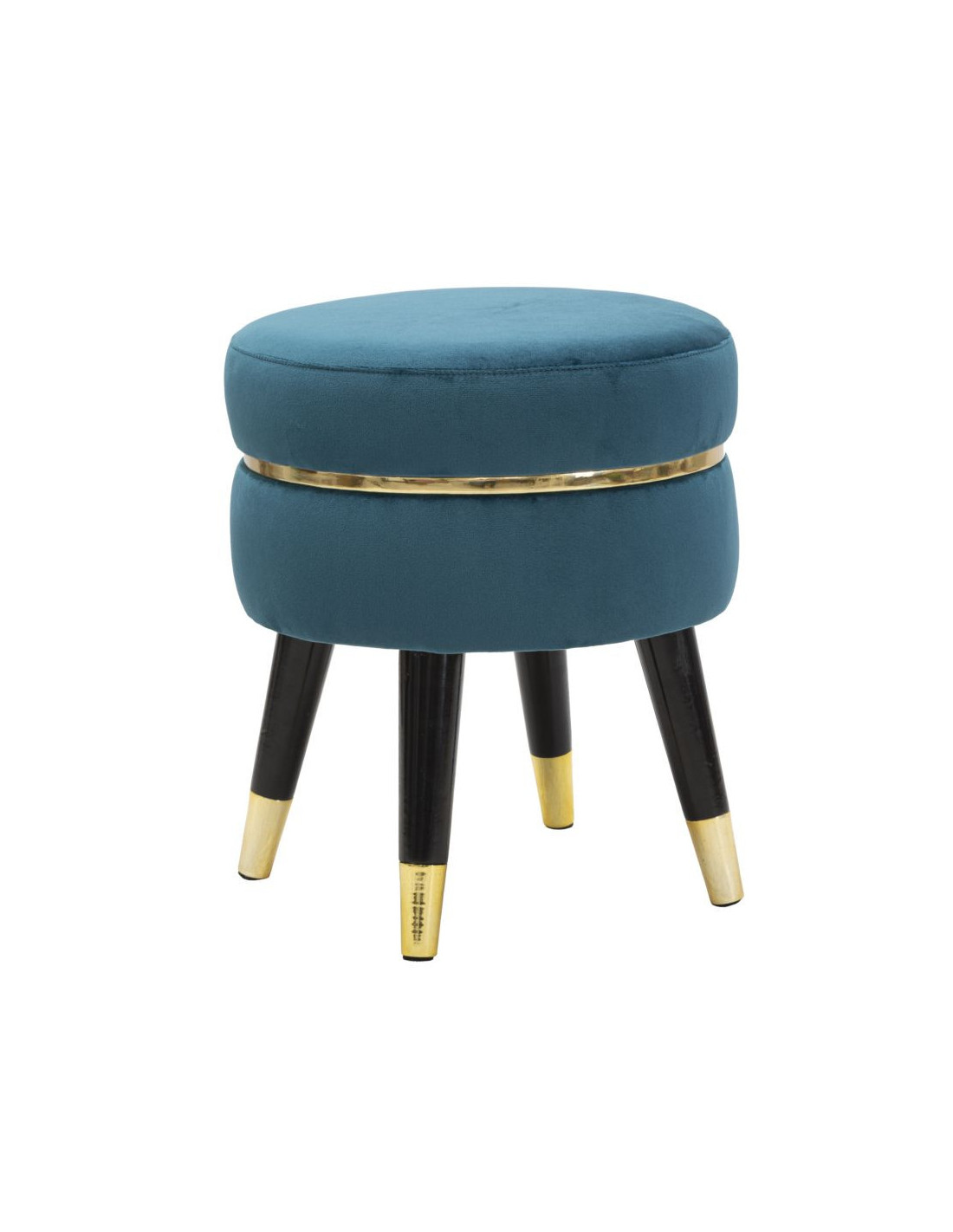 Tabouret moderne Rond en Velours Bleu canard Métal Doré Noir Paris
