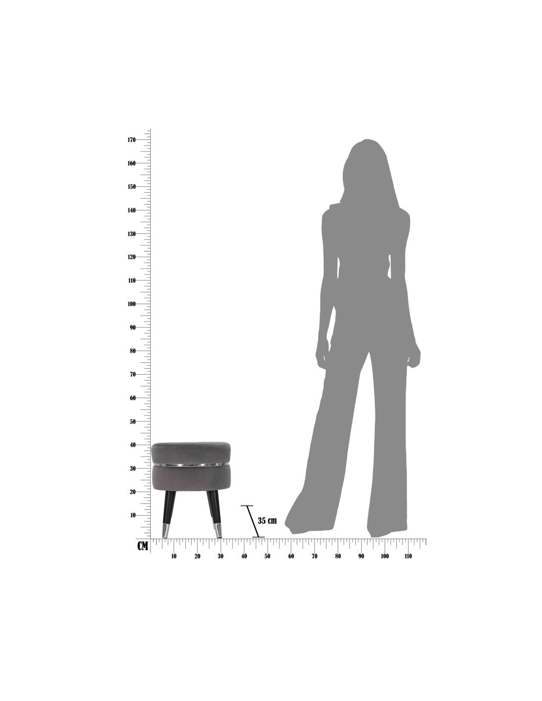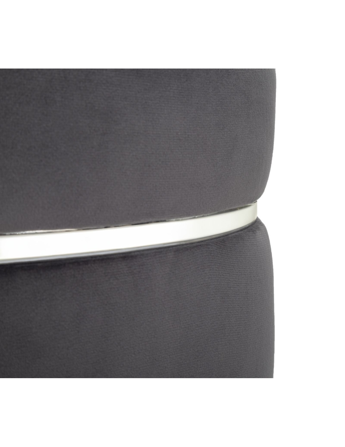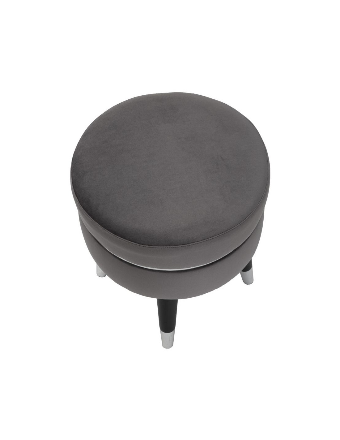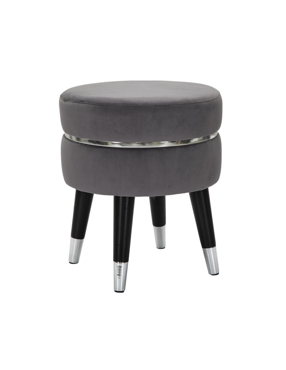 Tabouret moderne Rond en Velours Gris Métal Argenté Noir Paris