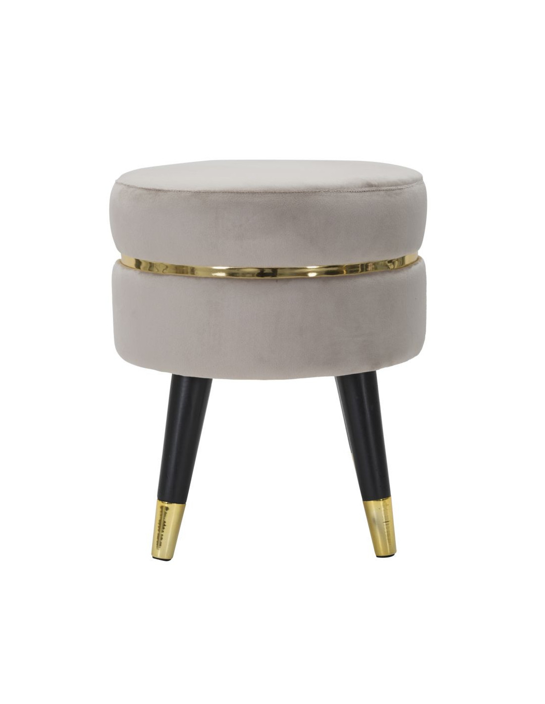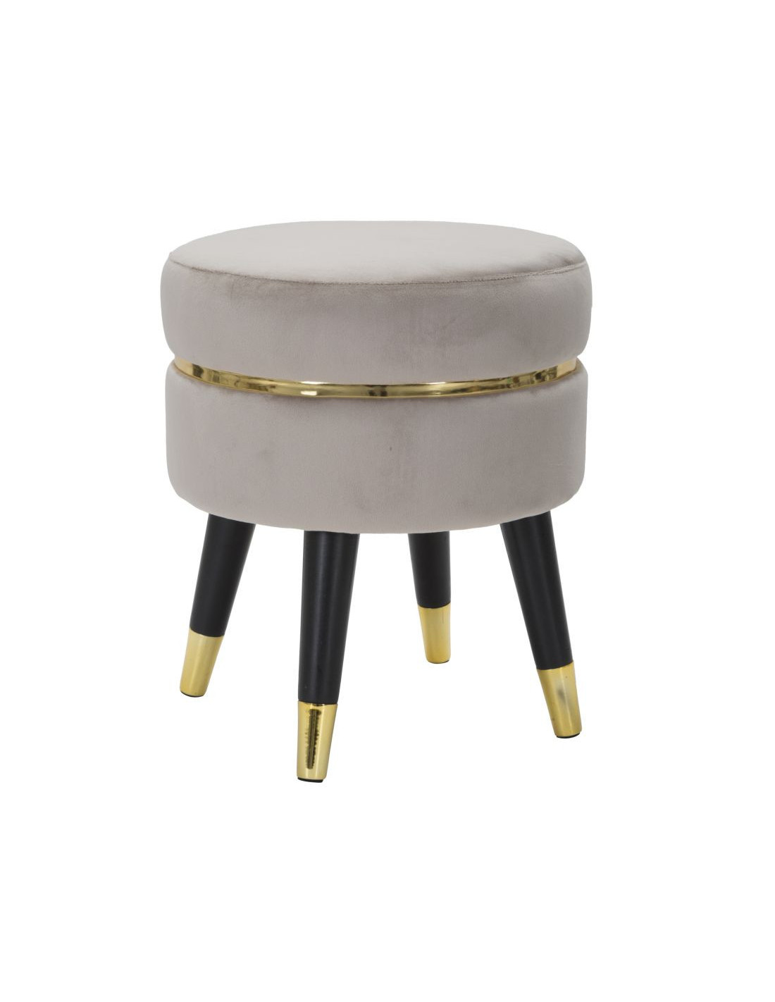 Tabouret moderne Rond en Velours Gris Métal Doré Noir Paris