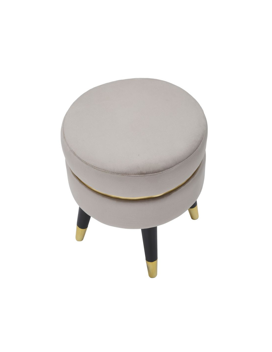 Tabouret moderne Rond en Velours Gris Métal Doré Noir Paris - 8
