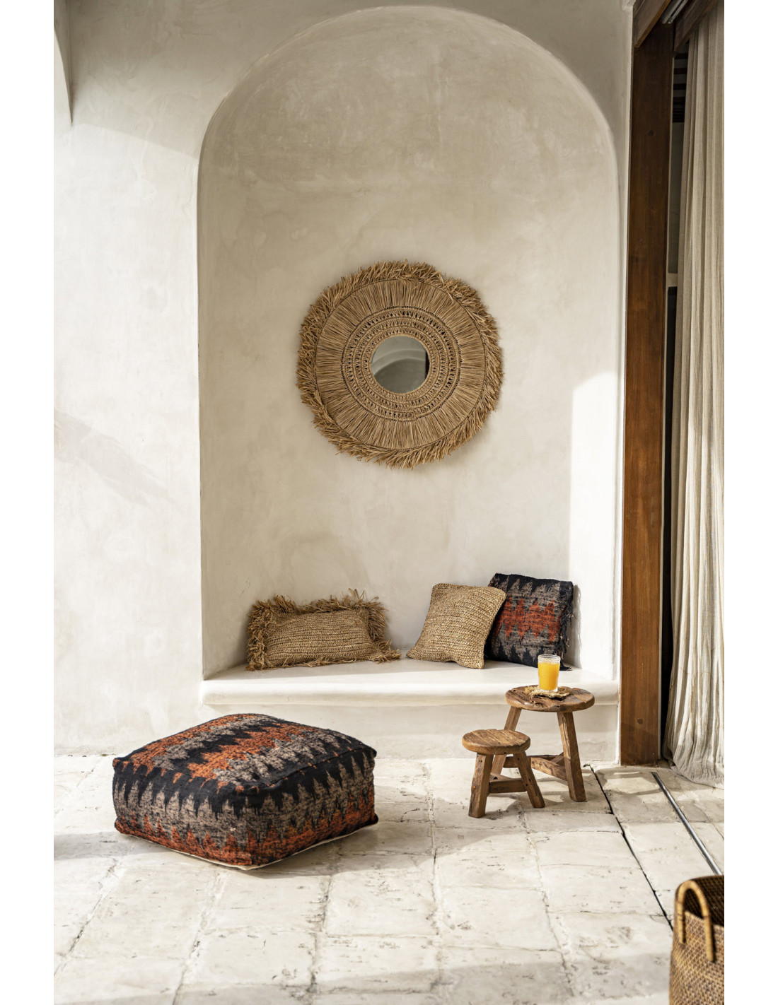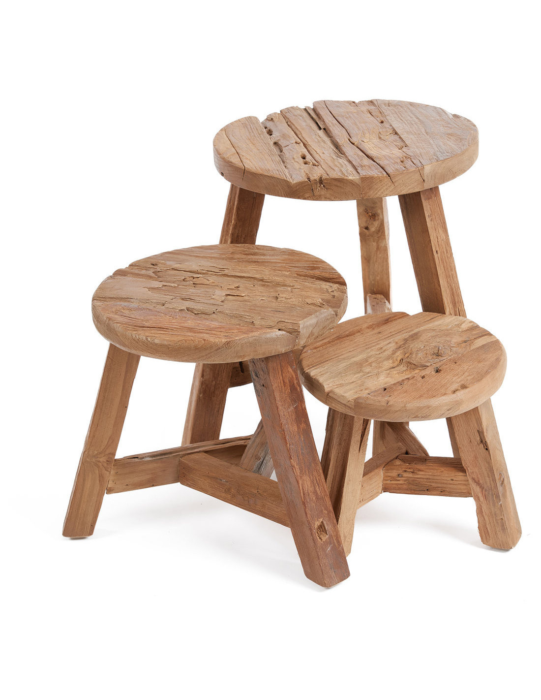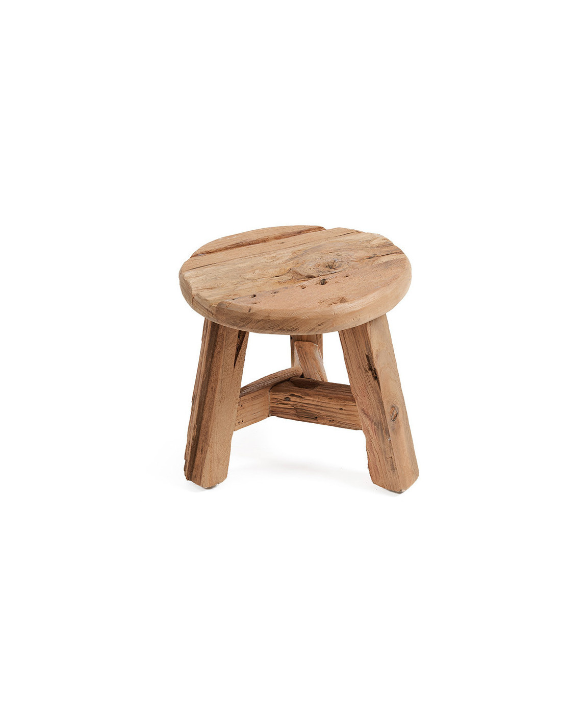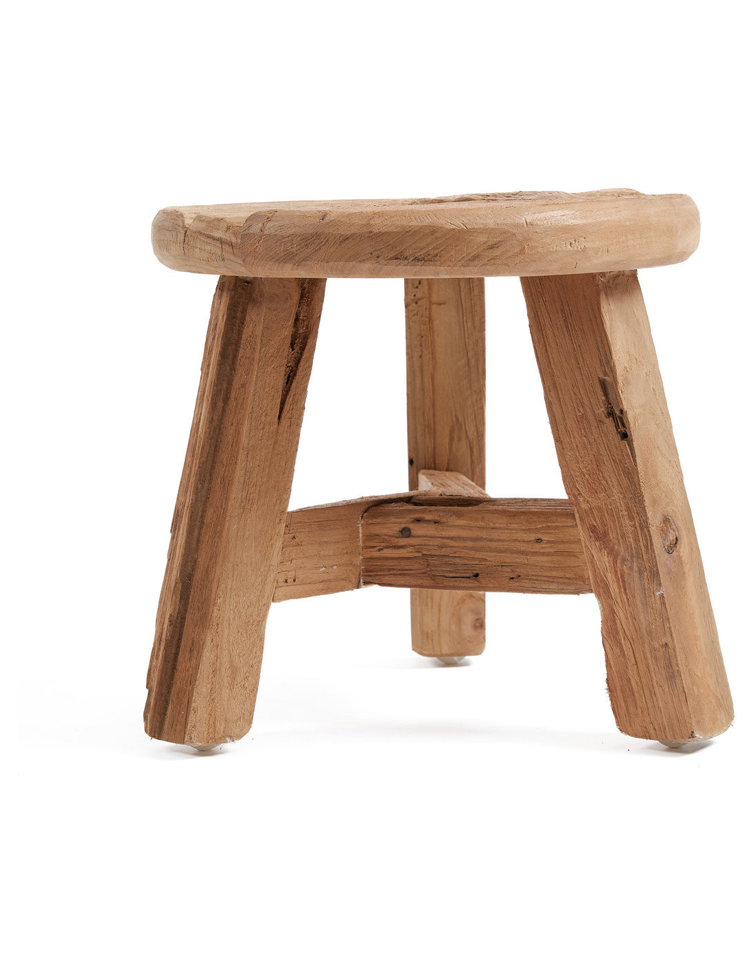 Tabouret original Rond en Bois de teck Blanc Naturel The Tribe