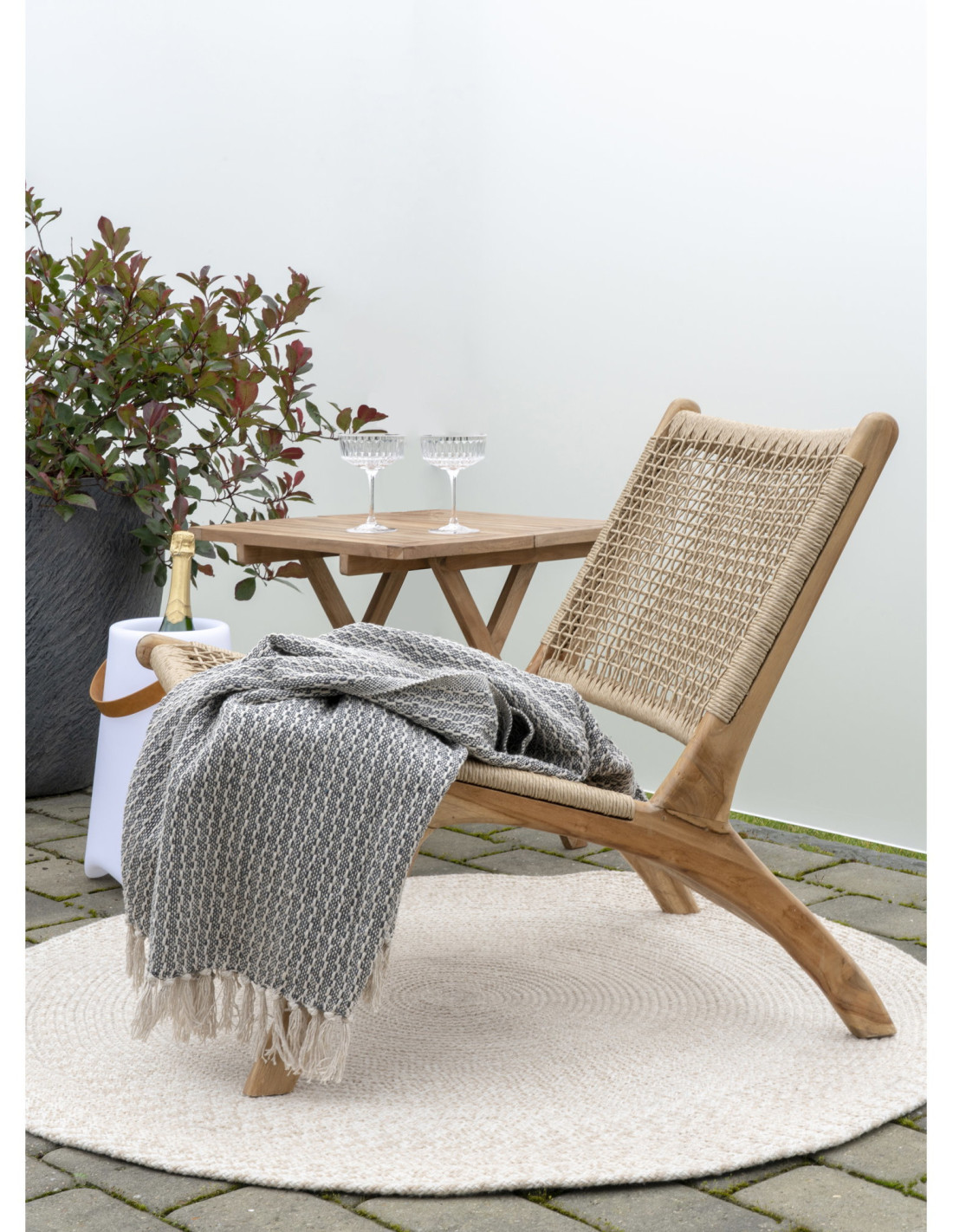 Tapis extérieur moderne Rond 120x120 Plastique recyclé Sable Menorca