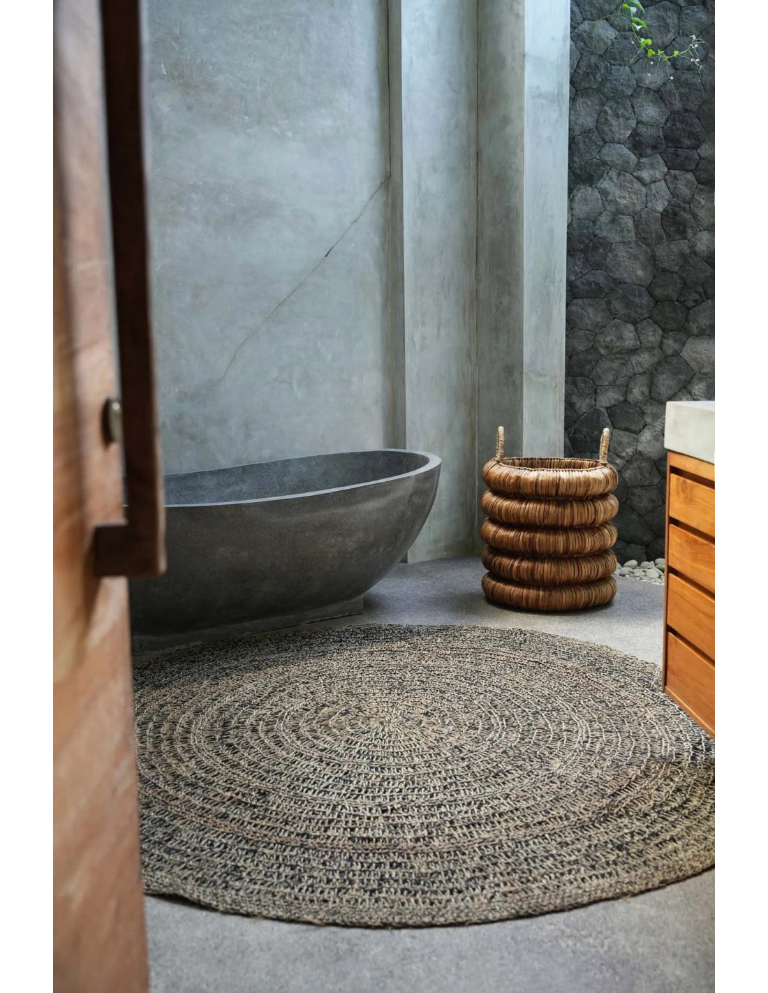 Tapis Rond 200 cm en Raphia Sisal Palmier Noir The Seagrass