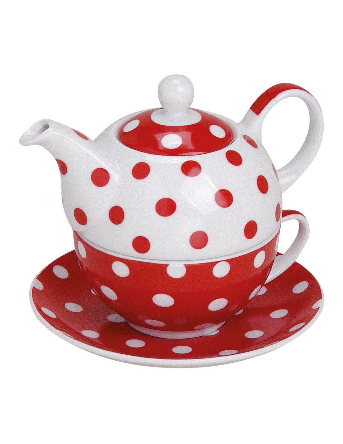 Théière égoïste moderne 400 ml Porcelaine Blanc Rouge Motif pois Tea For One - 1