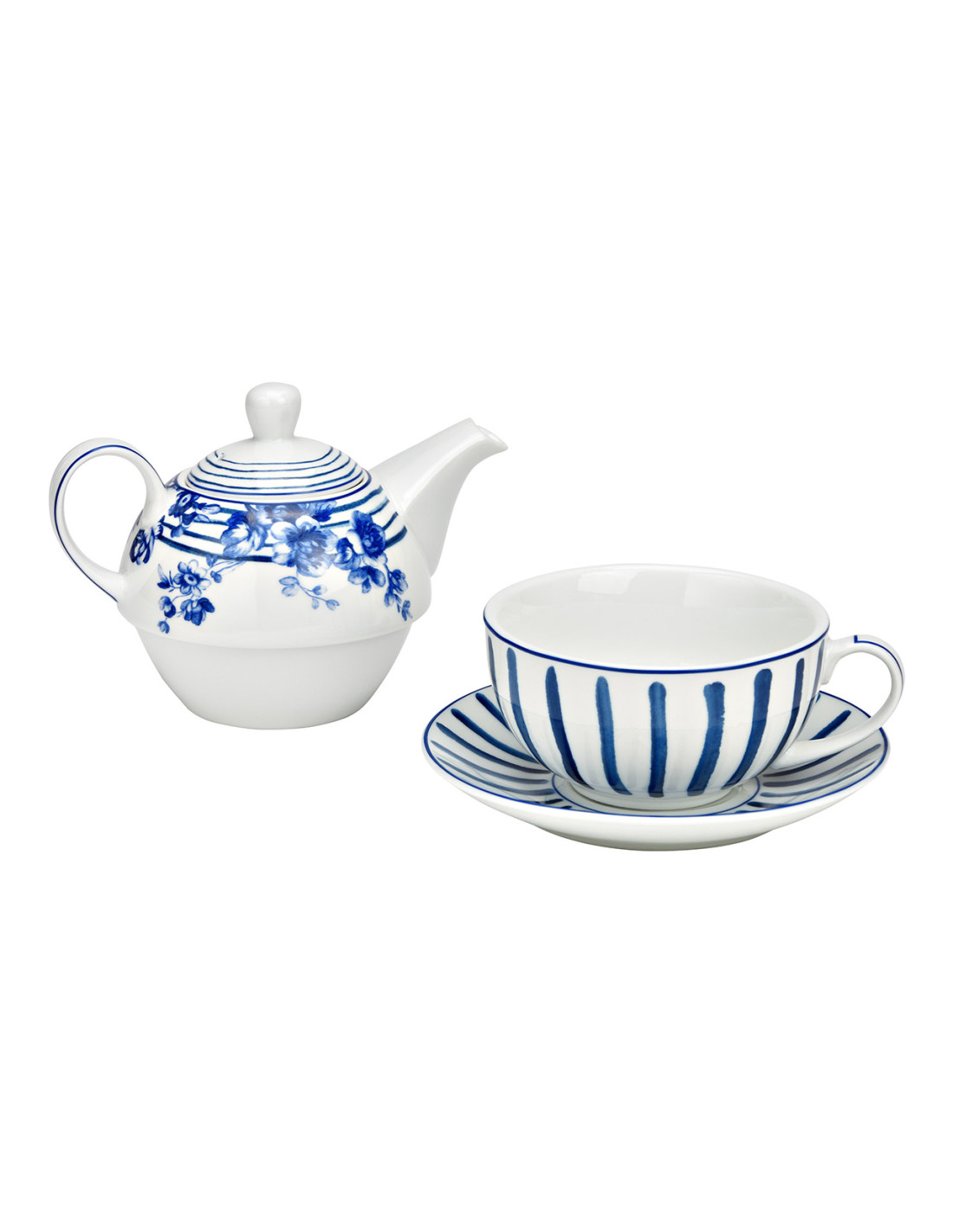 Théière égoïste romantique chic Porcelaine Blanc Bleu Motif fleurs & rayures Tea For One - 1