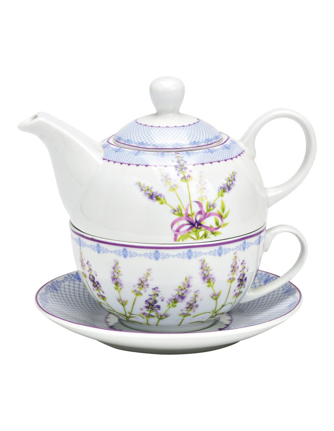 Théière égoïste Shabby chic 400 ml Porcelaine Blanc Bleu Motif lavande Tea For One
