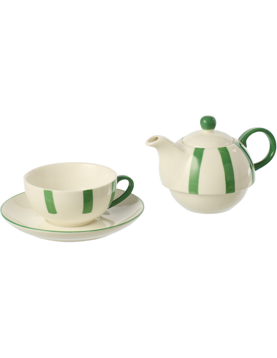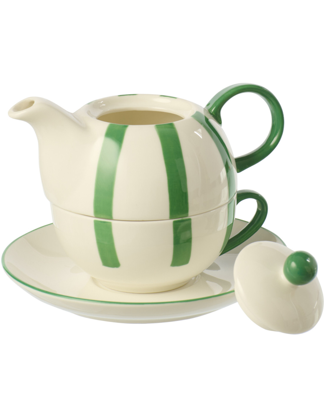 Théière égoïste style bord de mer Grès Vert Blanc Motif lignes Verona