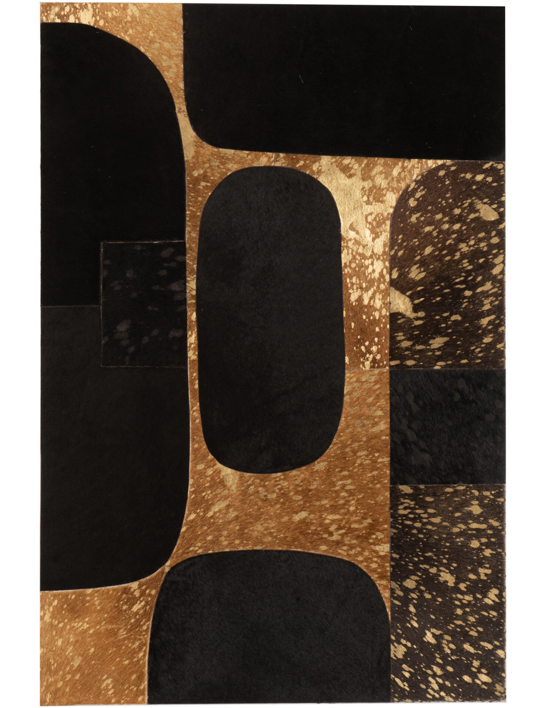 Toile murale abstraite Formes géométriques 60x90 en Bois Cuir véritable Noir Doré Goldon
