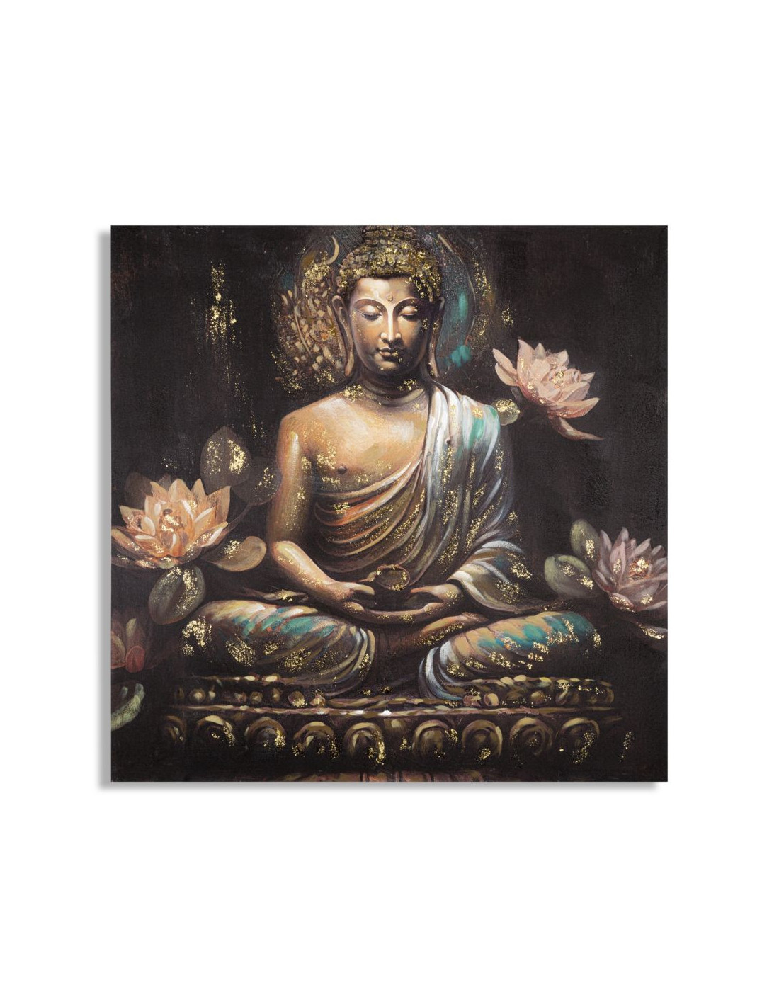 Toile murale et peinte Bouddha assis Doré Marron Rose 100x100 Buddha
