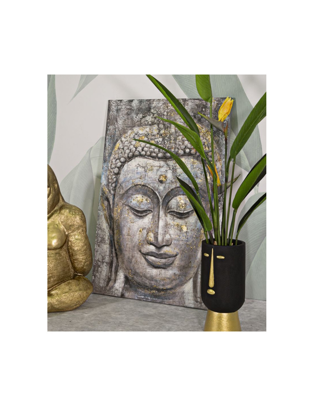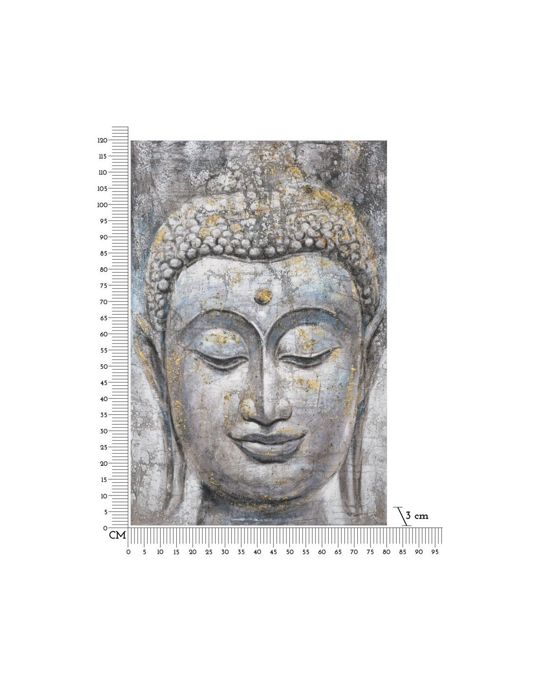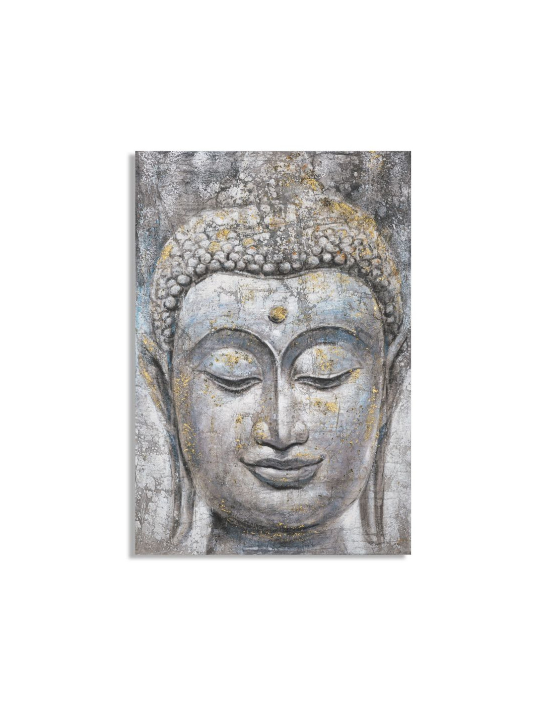 Toile murale et peinte Visage de Bouddha Gris Doré Bleu 80x120 Buddha