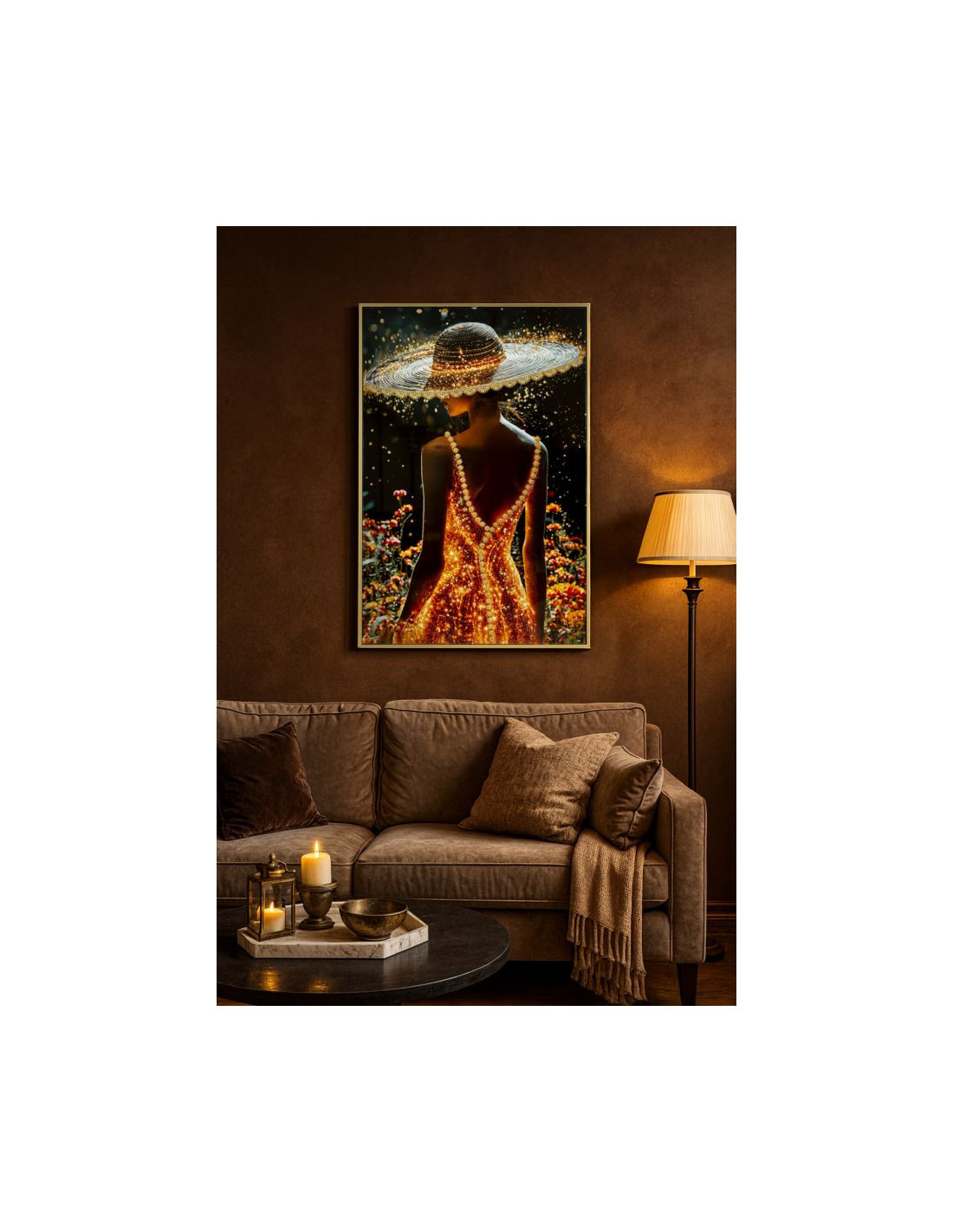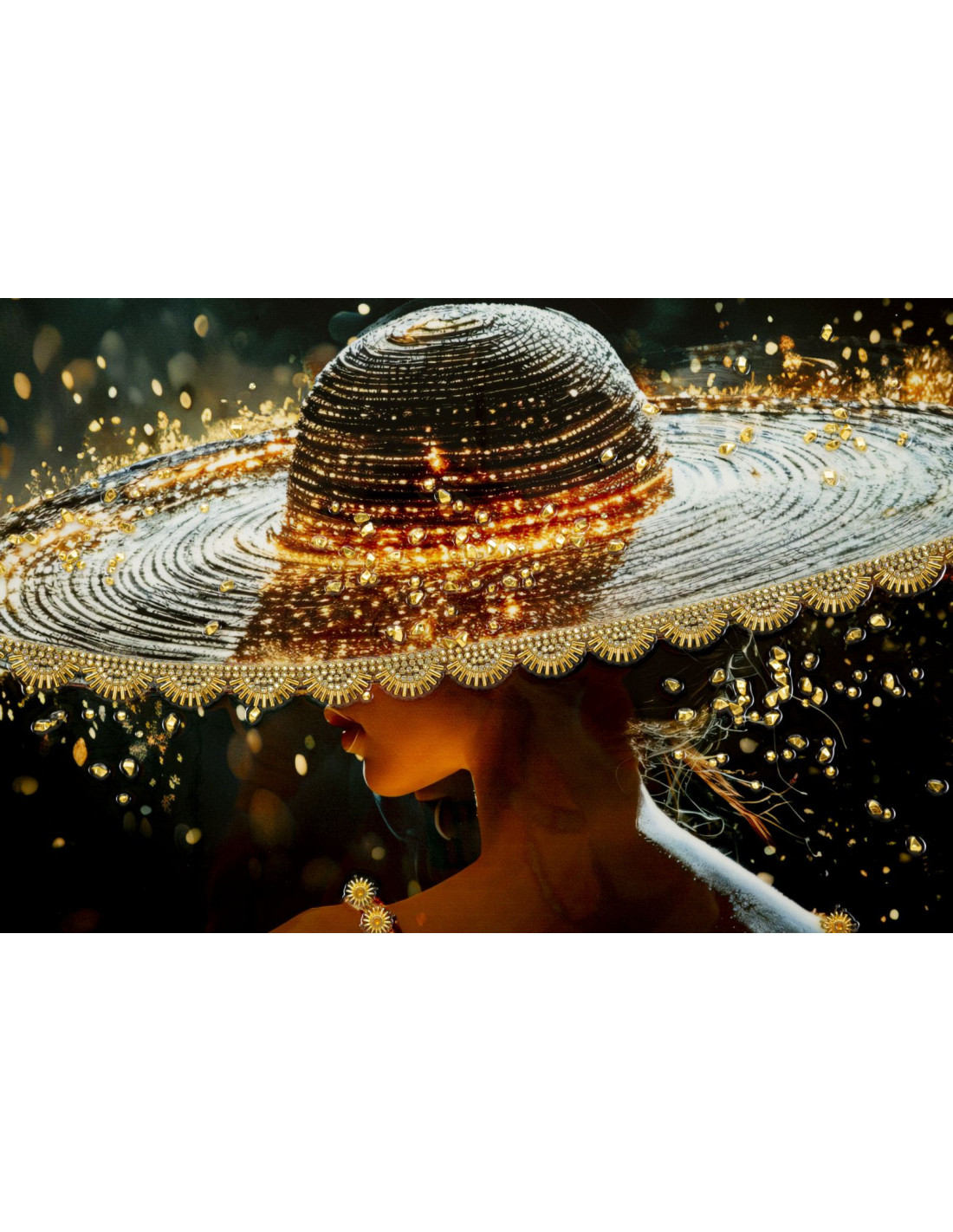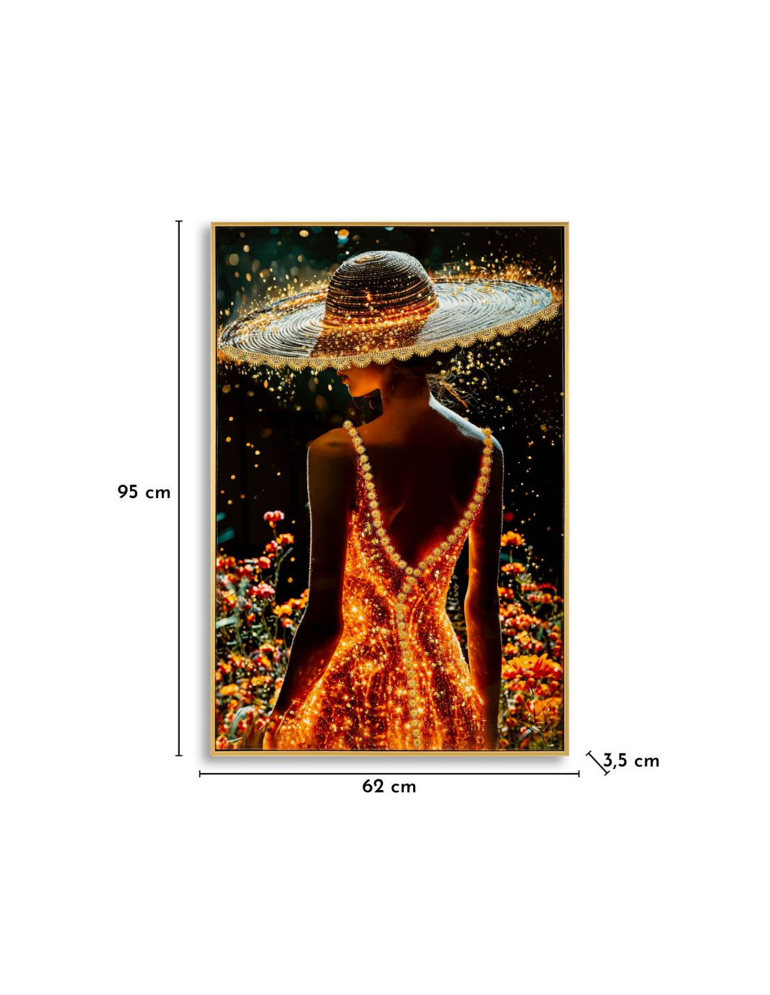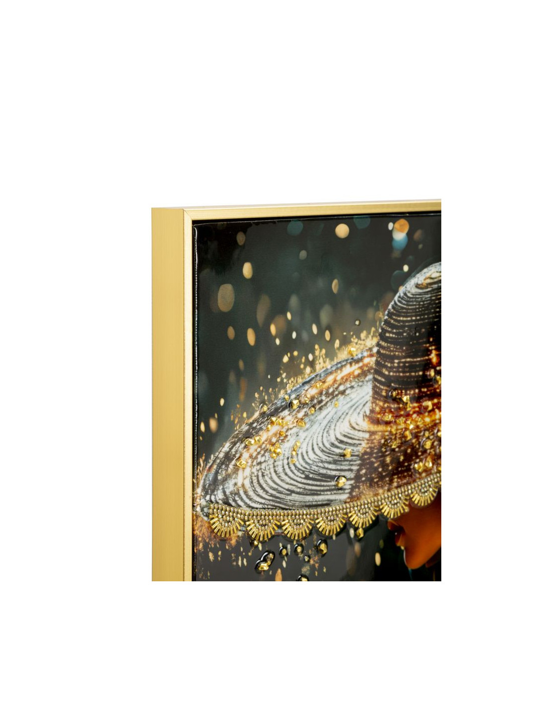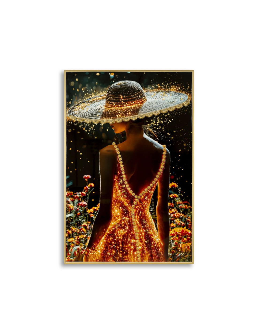Toile murale Femme glamour avec strass Cadre doré 62x92 Finition laquée Illumy B
