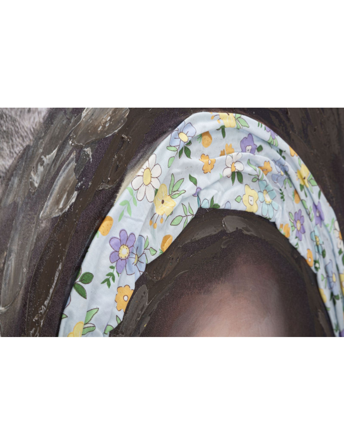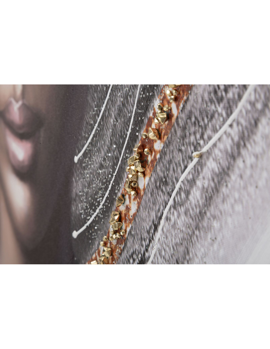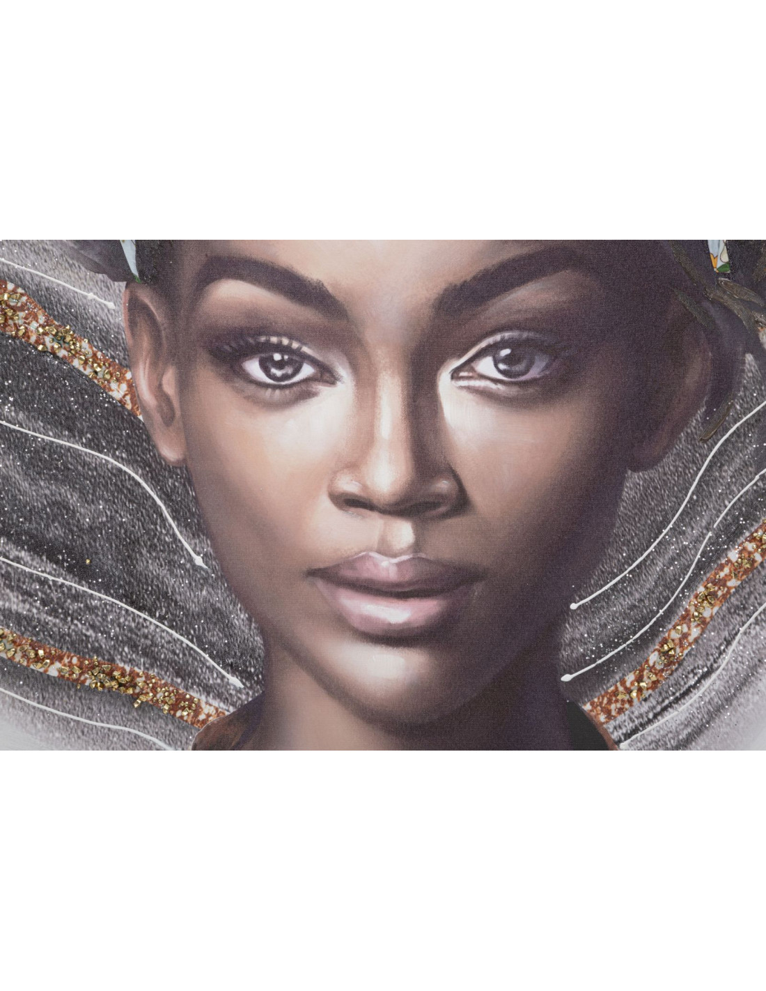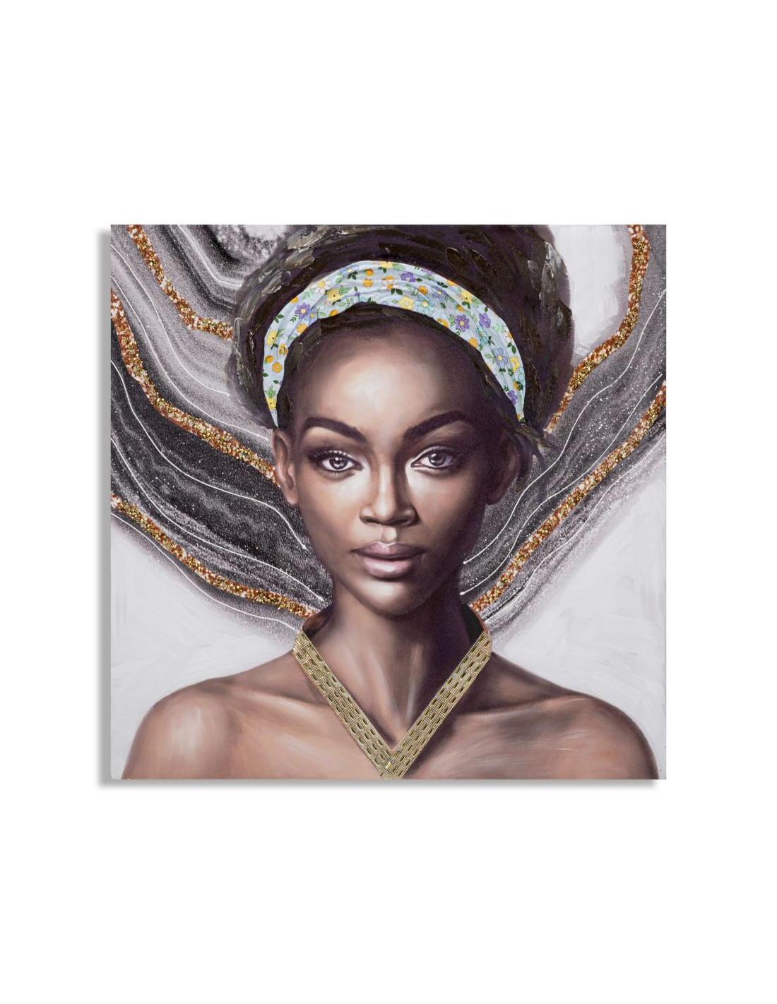Toile murale imprimée et peinte Femme africaine Gris Marron Doré 100x100 Naomi