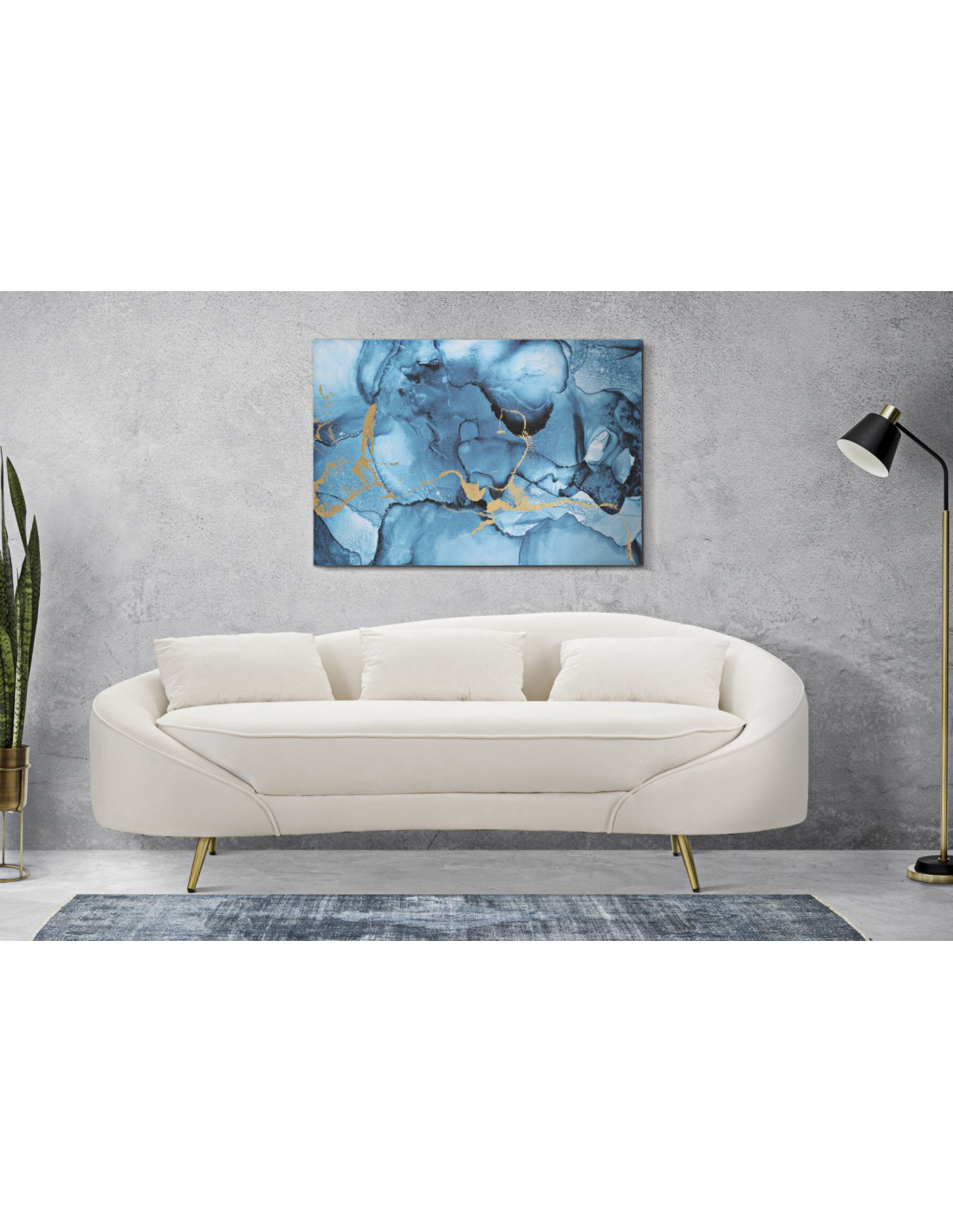 Toile murale imprimée et peinte Motif abstrait Bleu Doré 80x120 Rey