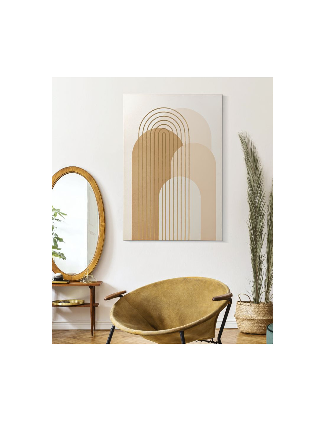 Toile murale imprimée et peinte Motif géométrique Beige Blanc Doré 80x120 Shine B