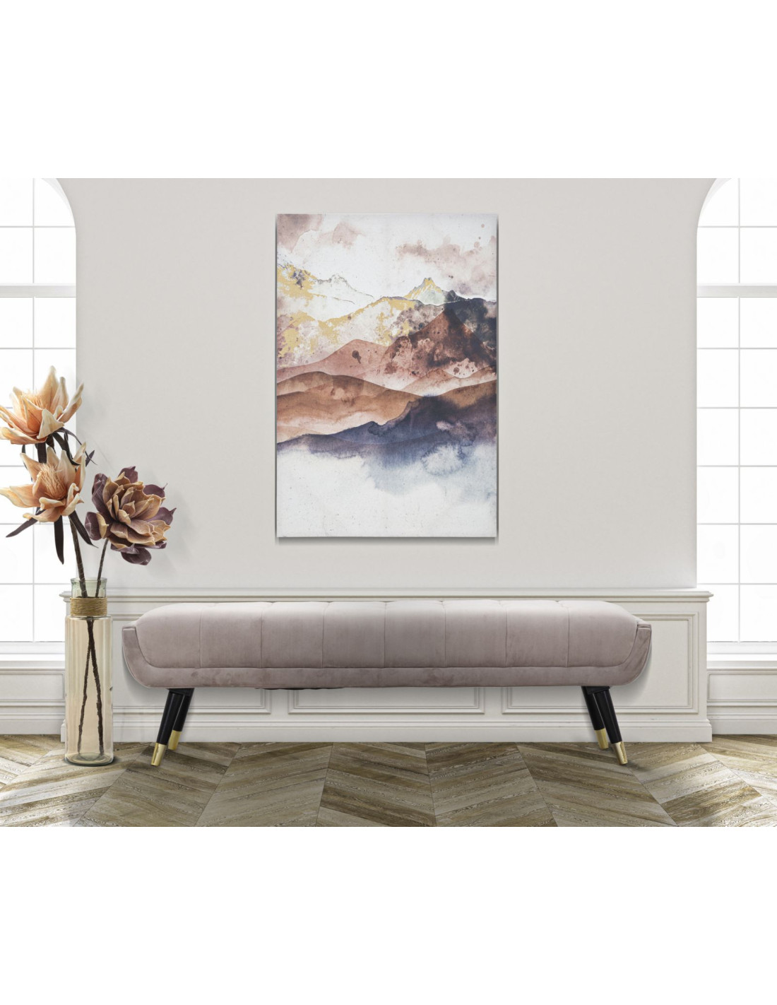 Toile murale imprimée et peinte Paysage Montagne Marron Blanc Doré 80x120 Mountain