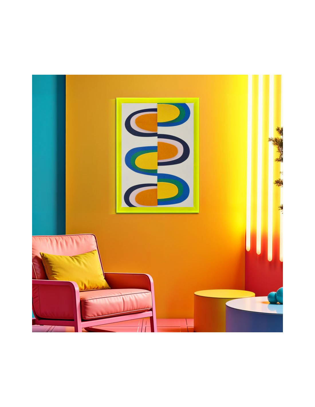 Toile murale imprimée motif abstrait Cadre acrylique jaune 50x70 Pop Art A
