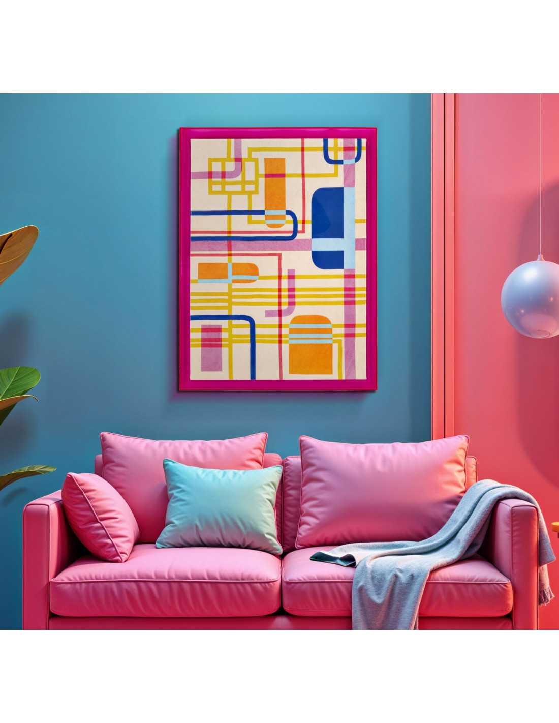 Toile murale imprimée motif abstrait Cadre acrylique rose 60x80 Finition laquée Modis