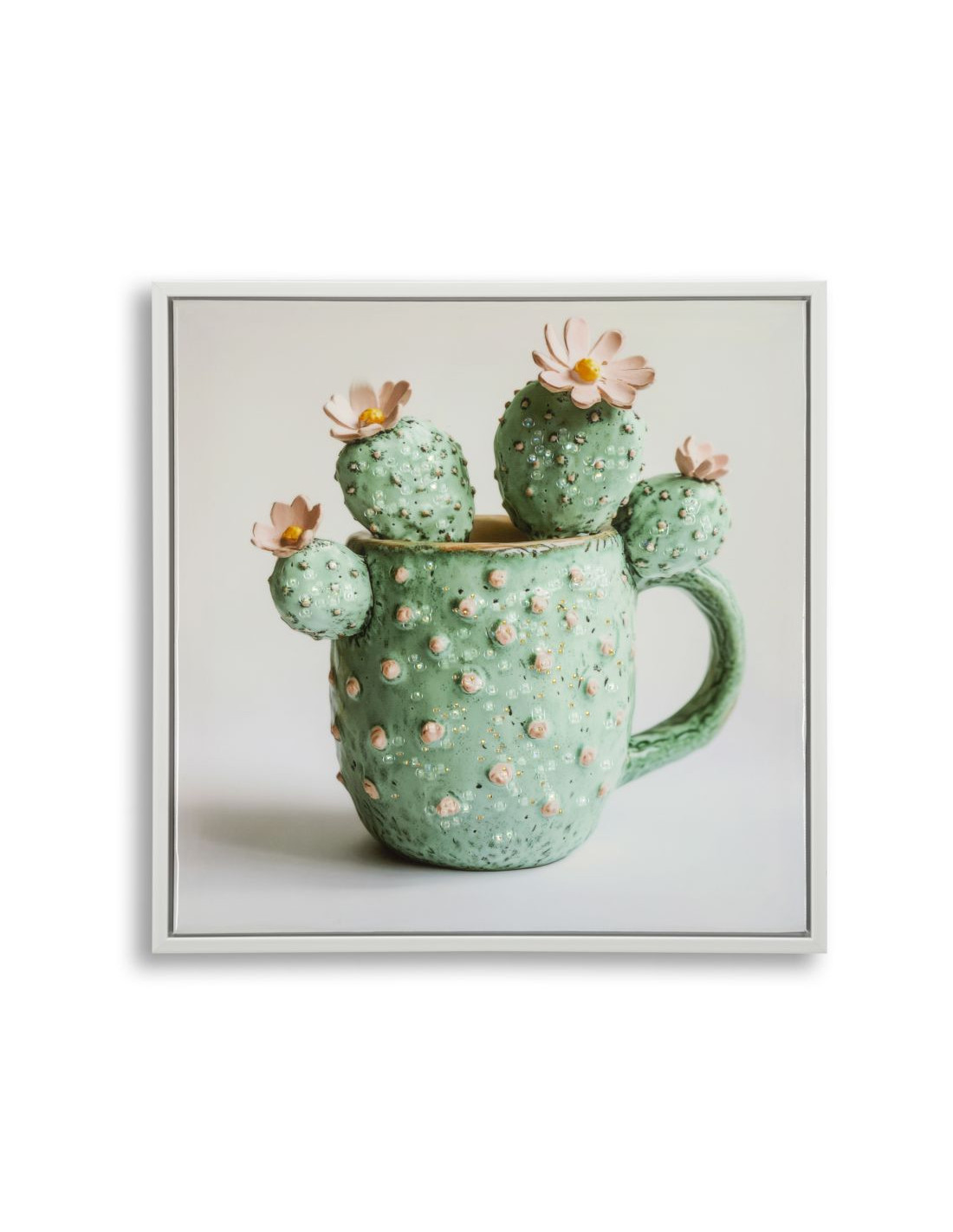 Toile murale imprimée Plante grasse Cadre blanc 40x40 Finition laquée Cactus C