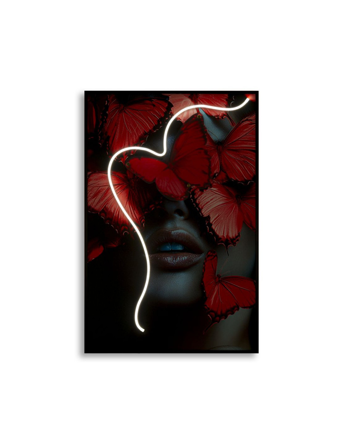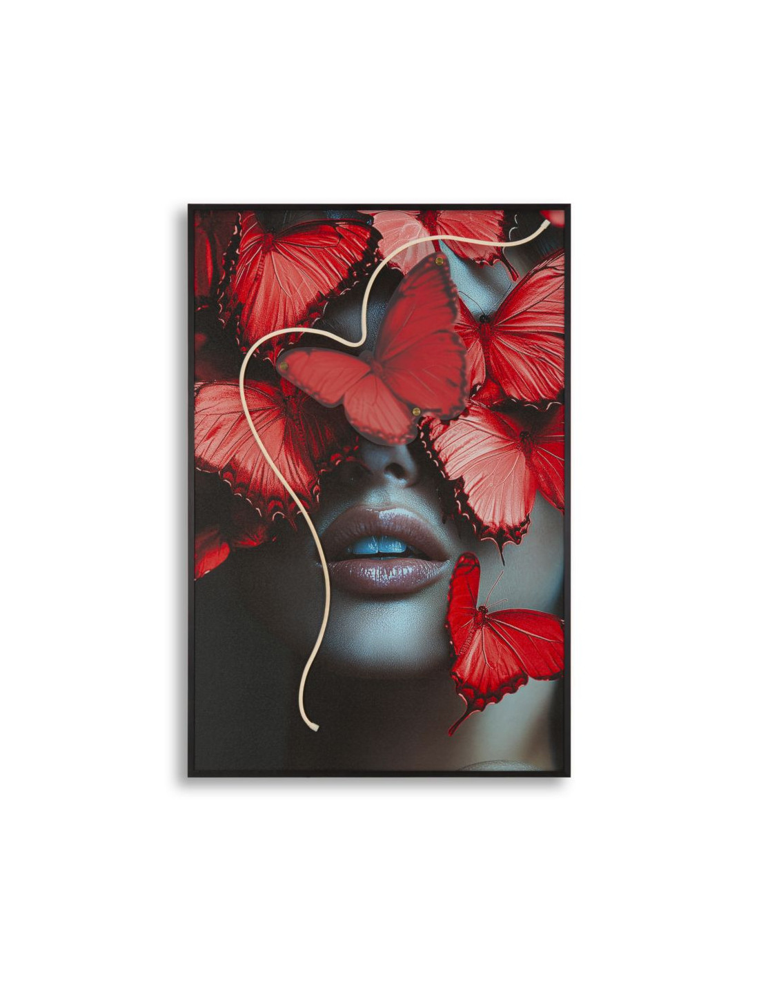 Toile murale lumineuse LED Femme papillons Cadre noir 60x90 Finition 3D Butterflies