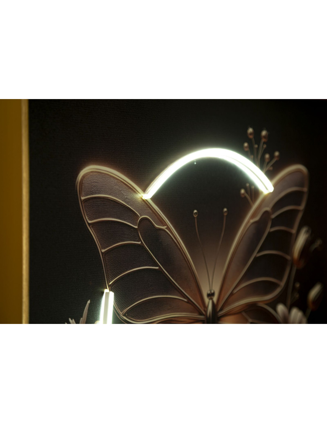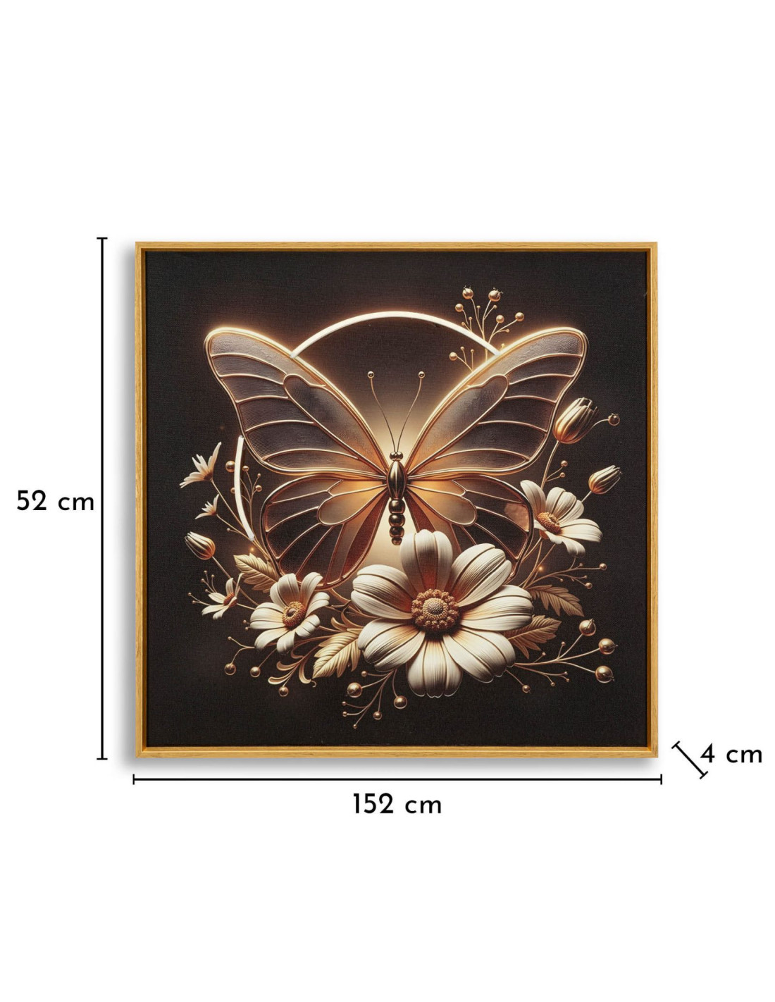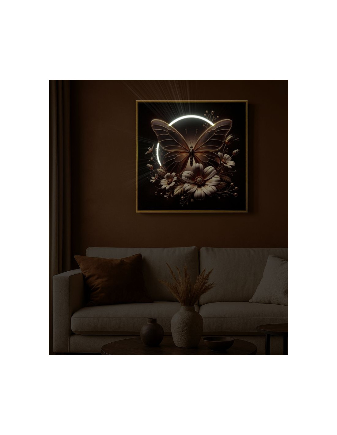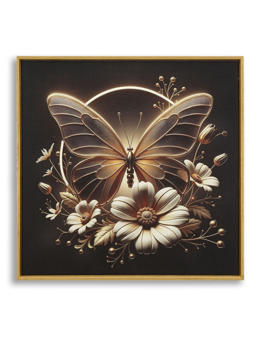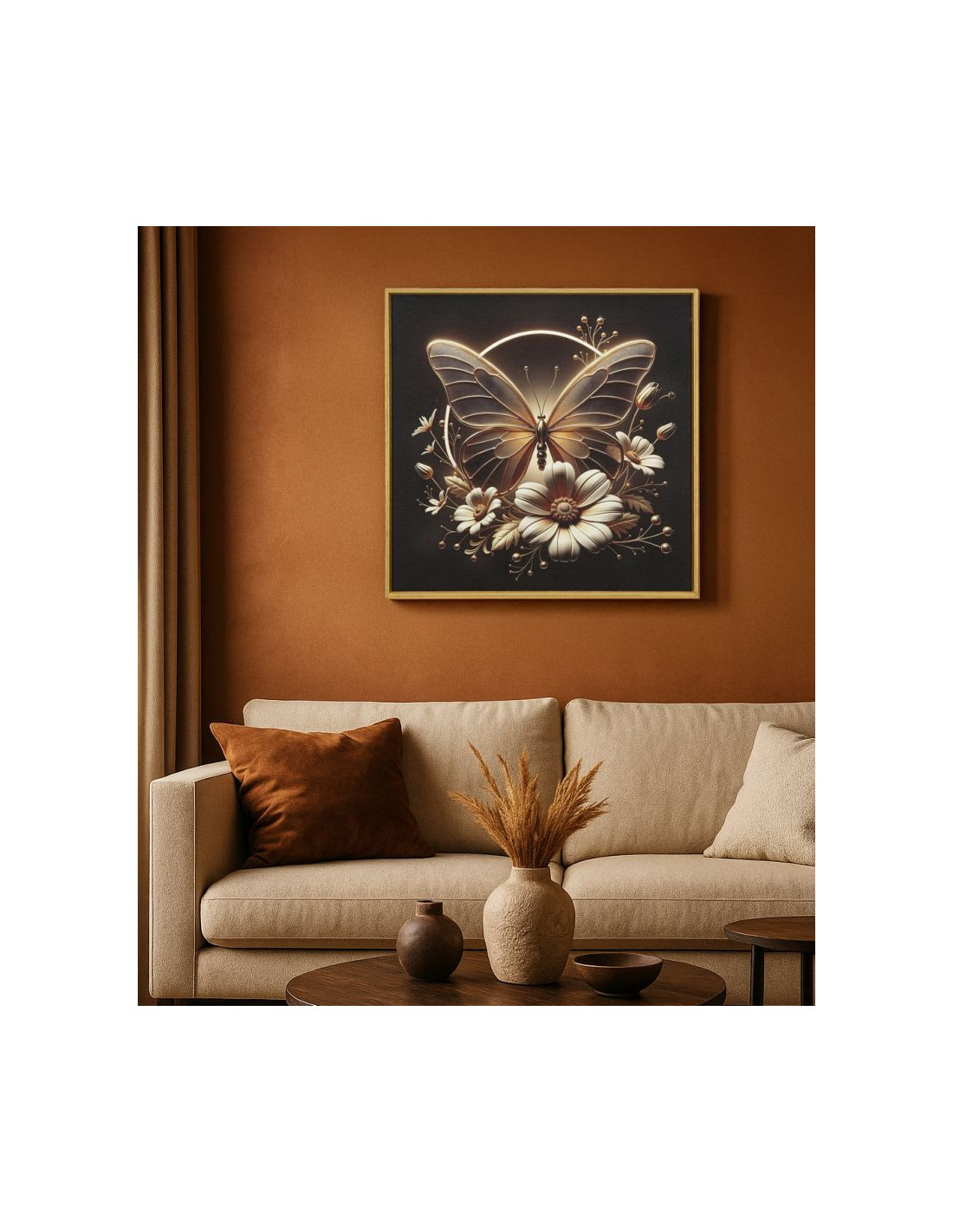 Toile murale lumineuse LED Papillon & Fleurs Cadre doré 50x50 Finition laquée Butterfly