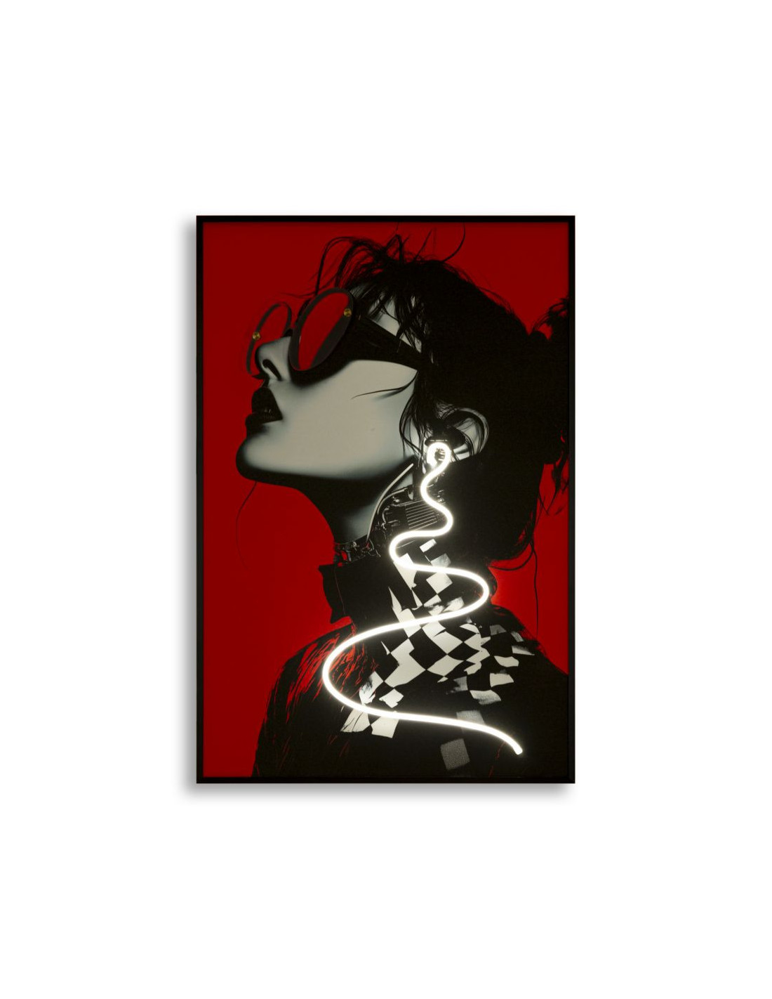 Toile murale lumineuse LED Pop art Femme Cadre noir 60x90 Finition 3D Psyco B