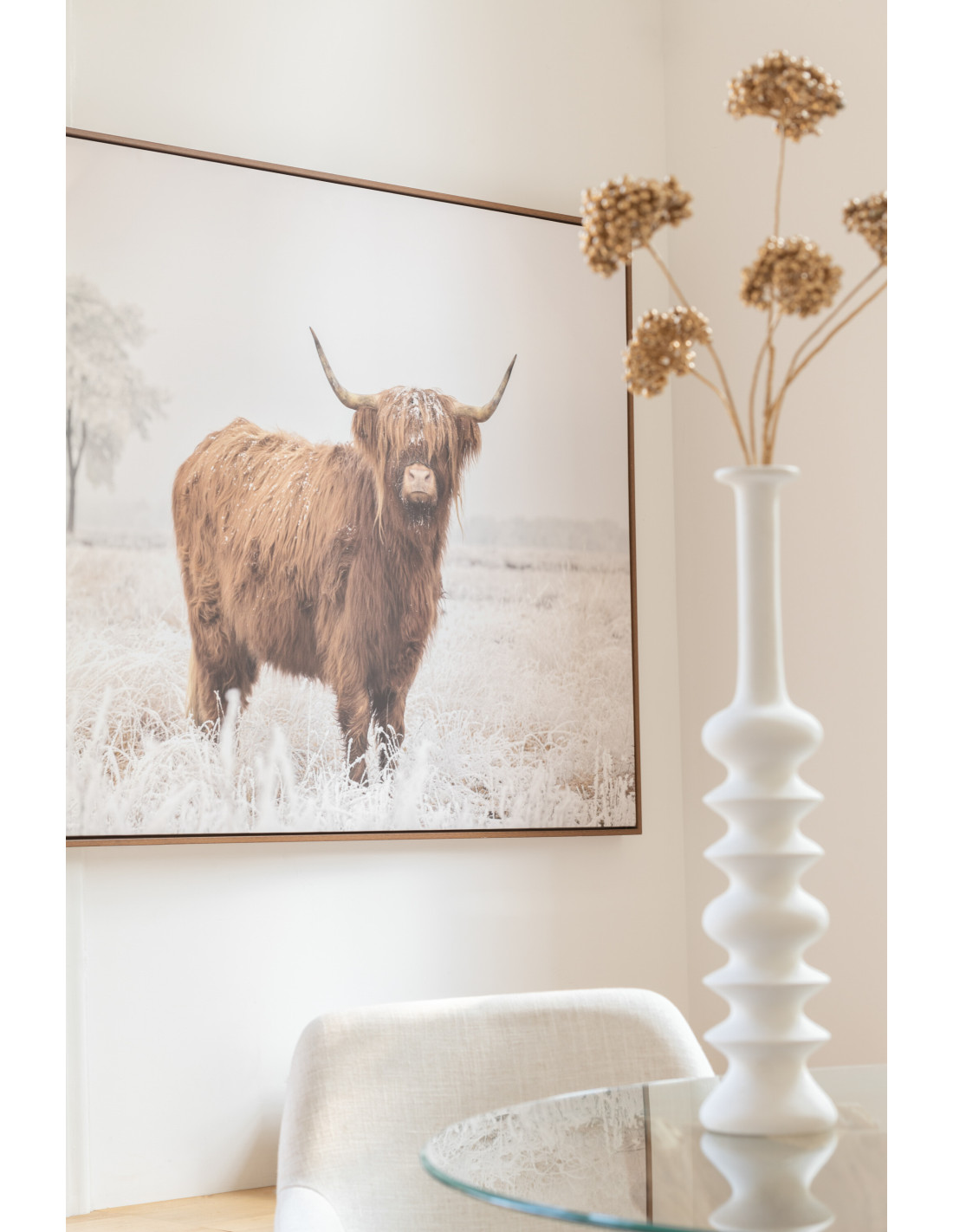 Toile murale originale imprimée Yack Paysage 143x103 Cadre en bois de pin Marron Blanc Gavlon - 1