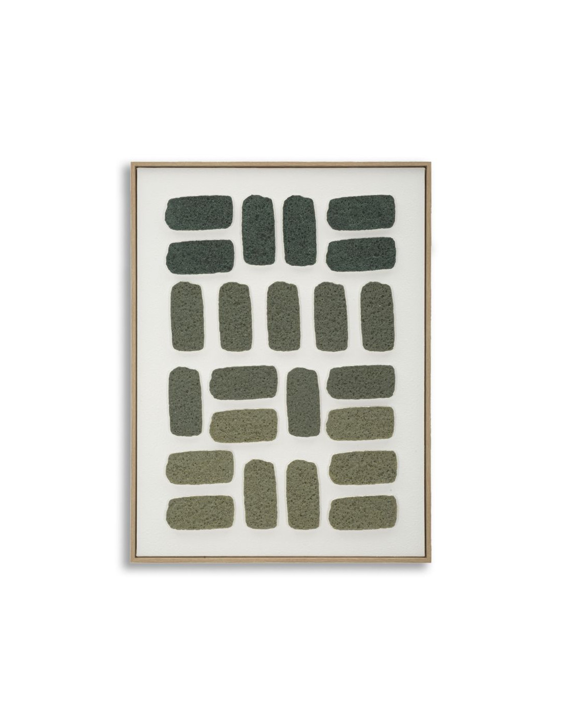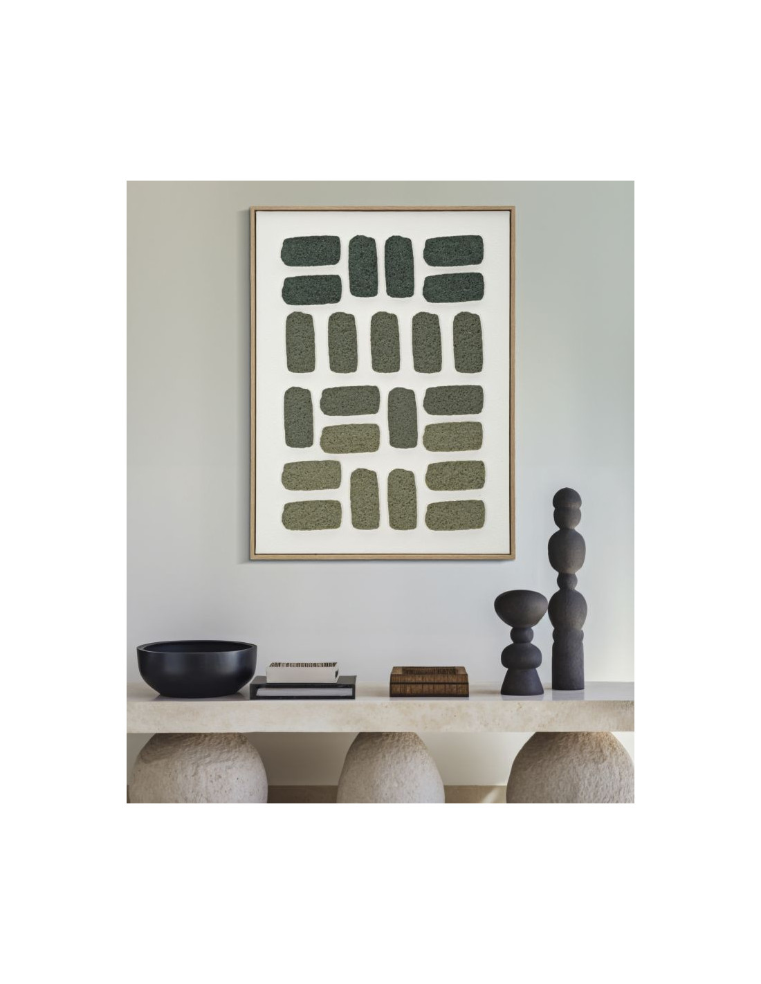 Toile murale peinte abstraite relief Cadre naturel 60x80 Blanc Vert Motif géométrique 3D