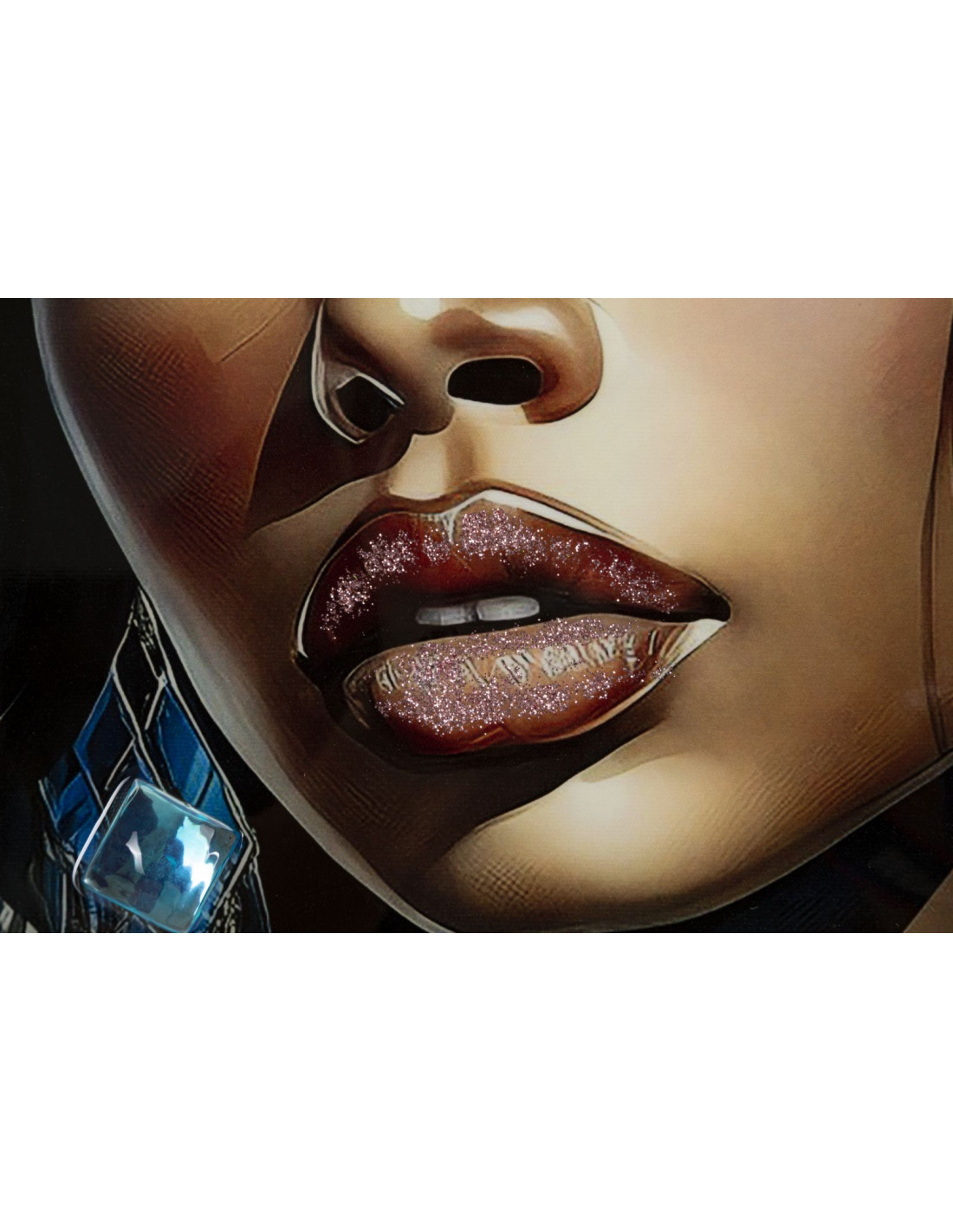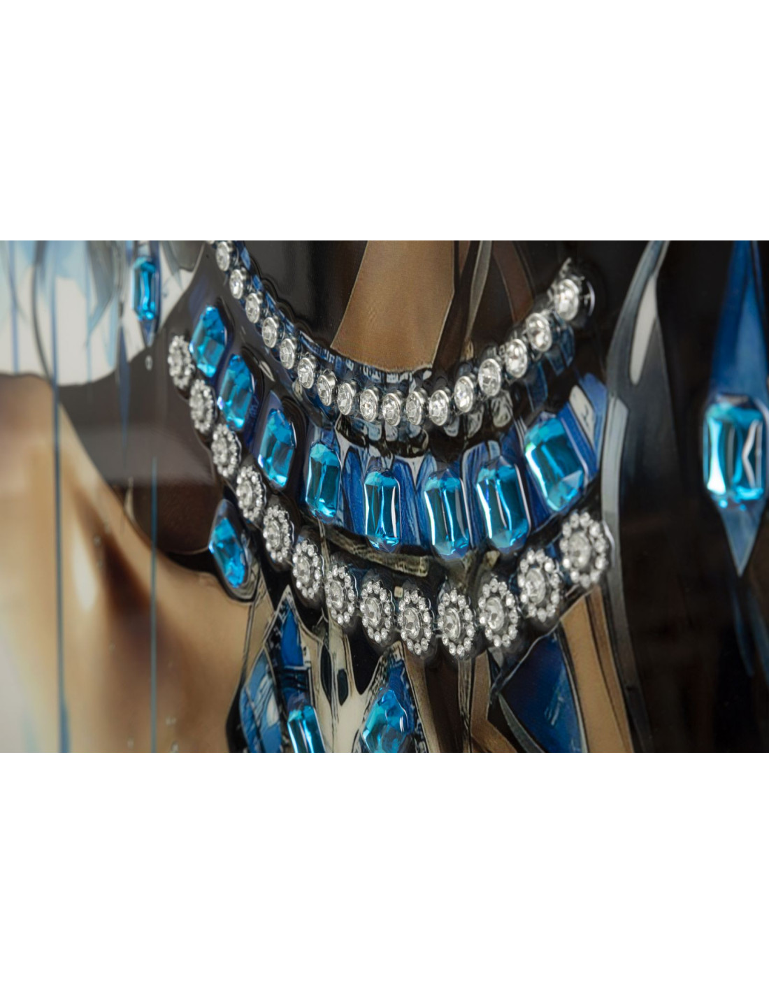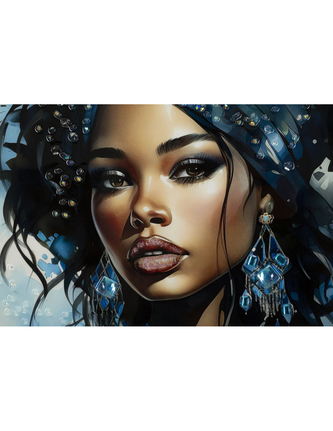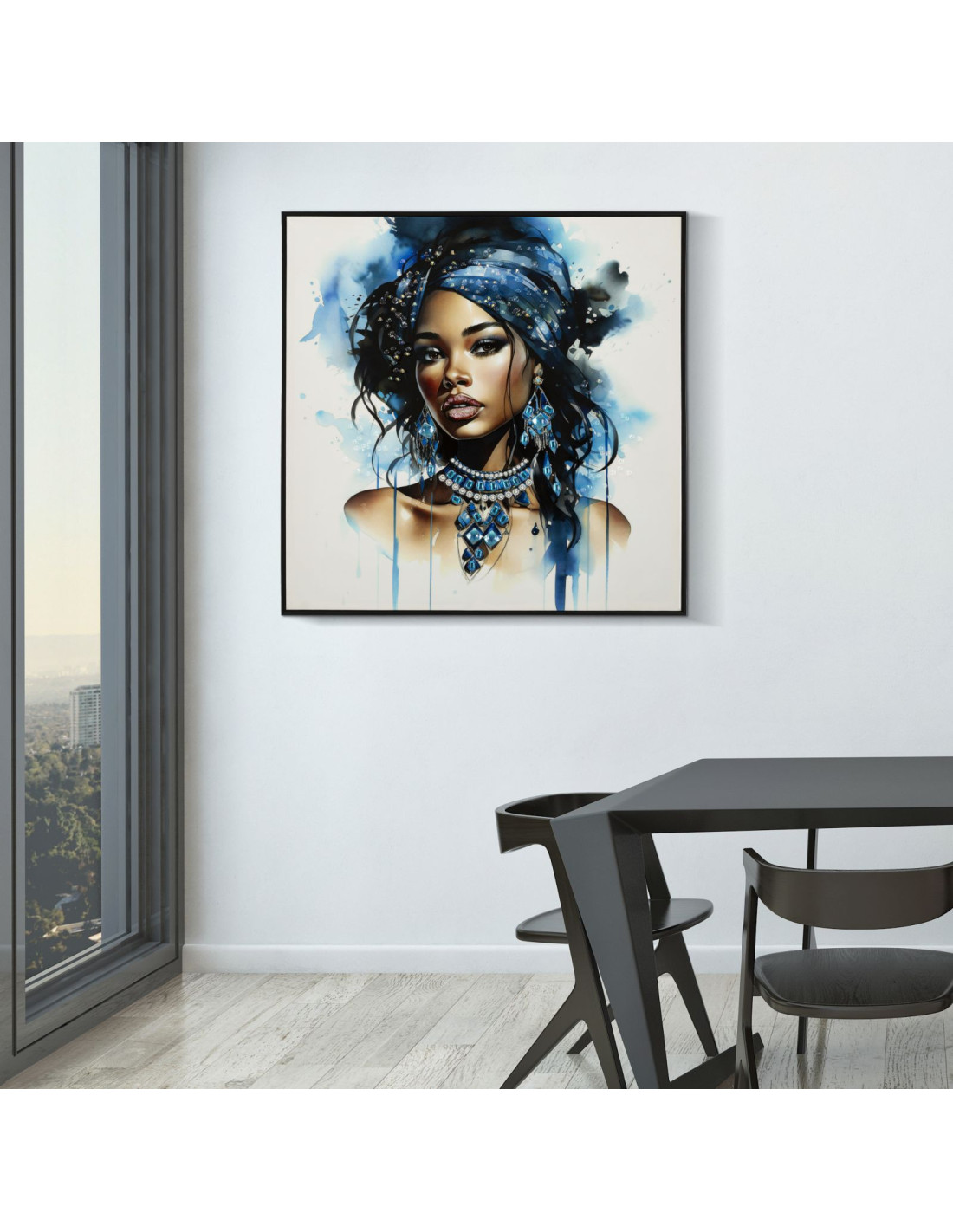 Toile murale peinte carrée Femme africaine 82x82 Cadre noir Altea B