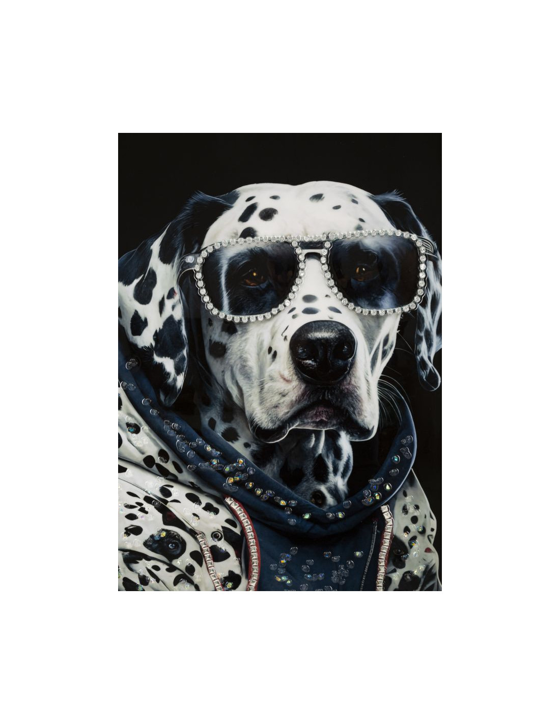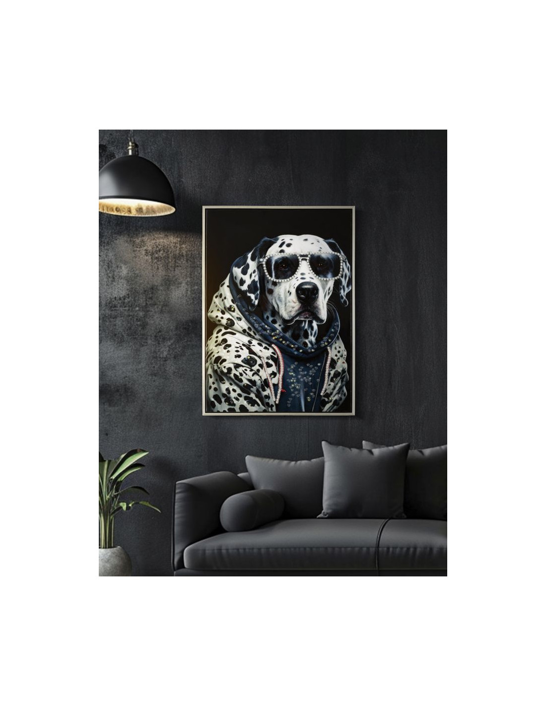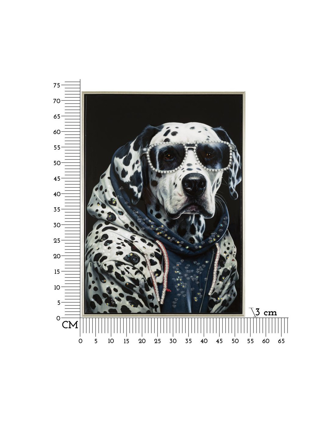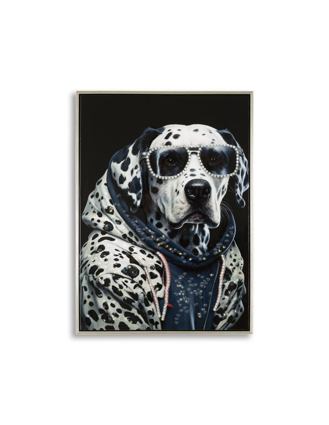 Toile murale peinte Chien anthropomorphe 53x73 Cadre argenté Trap