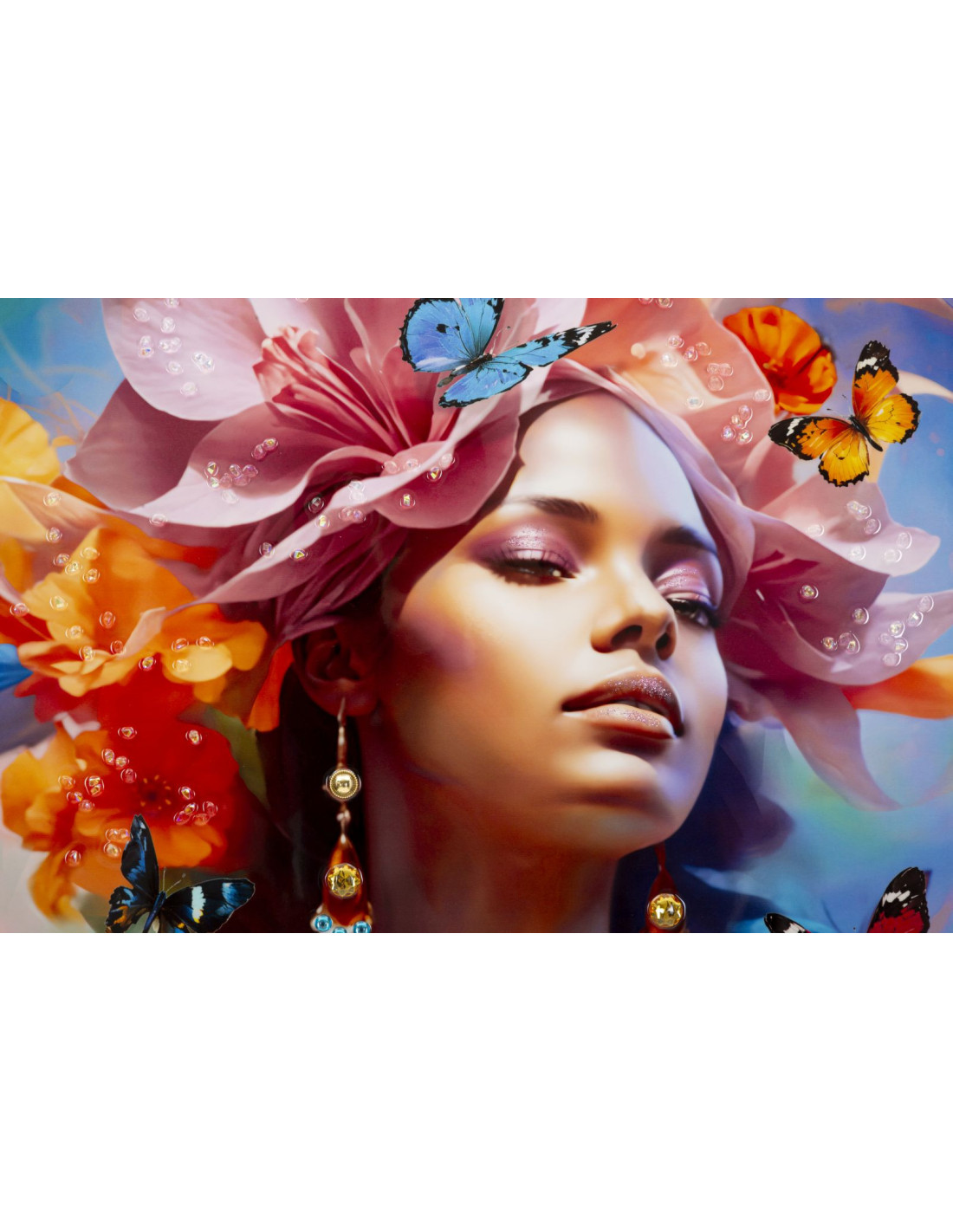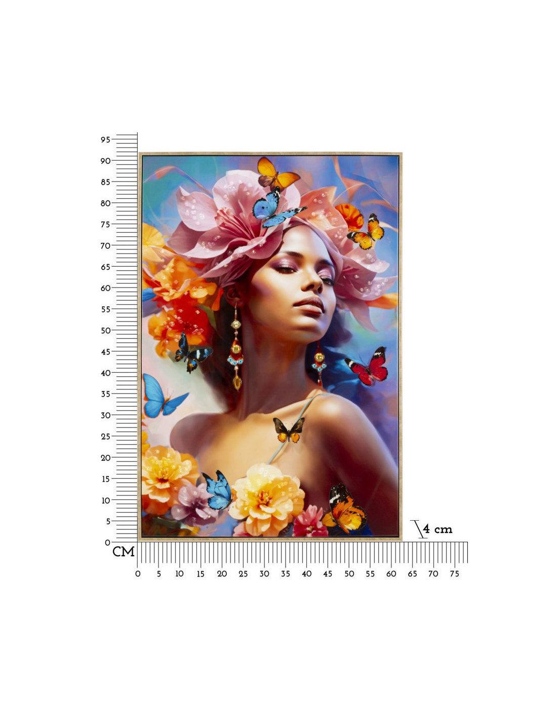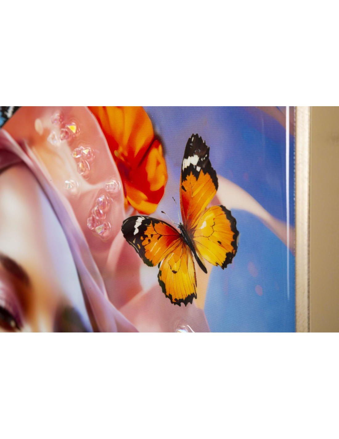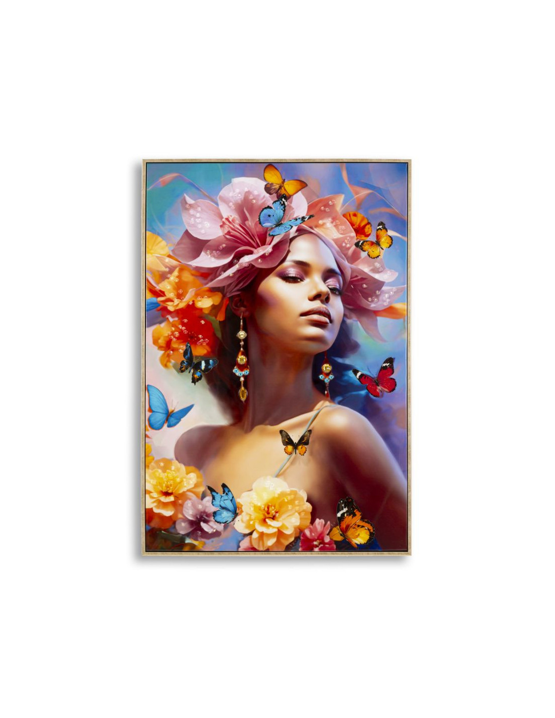 Toile murale peinte claire Femme Papillons 62x92 avec cadre doré Marty