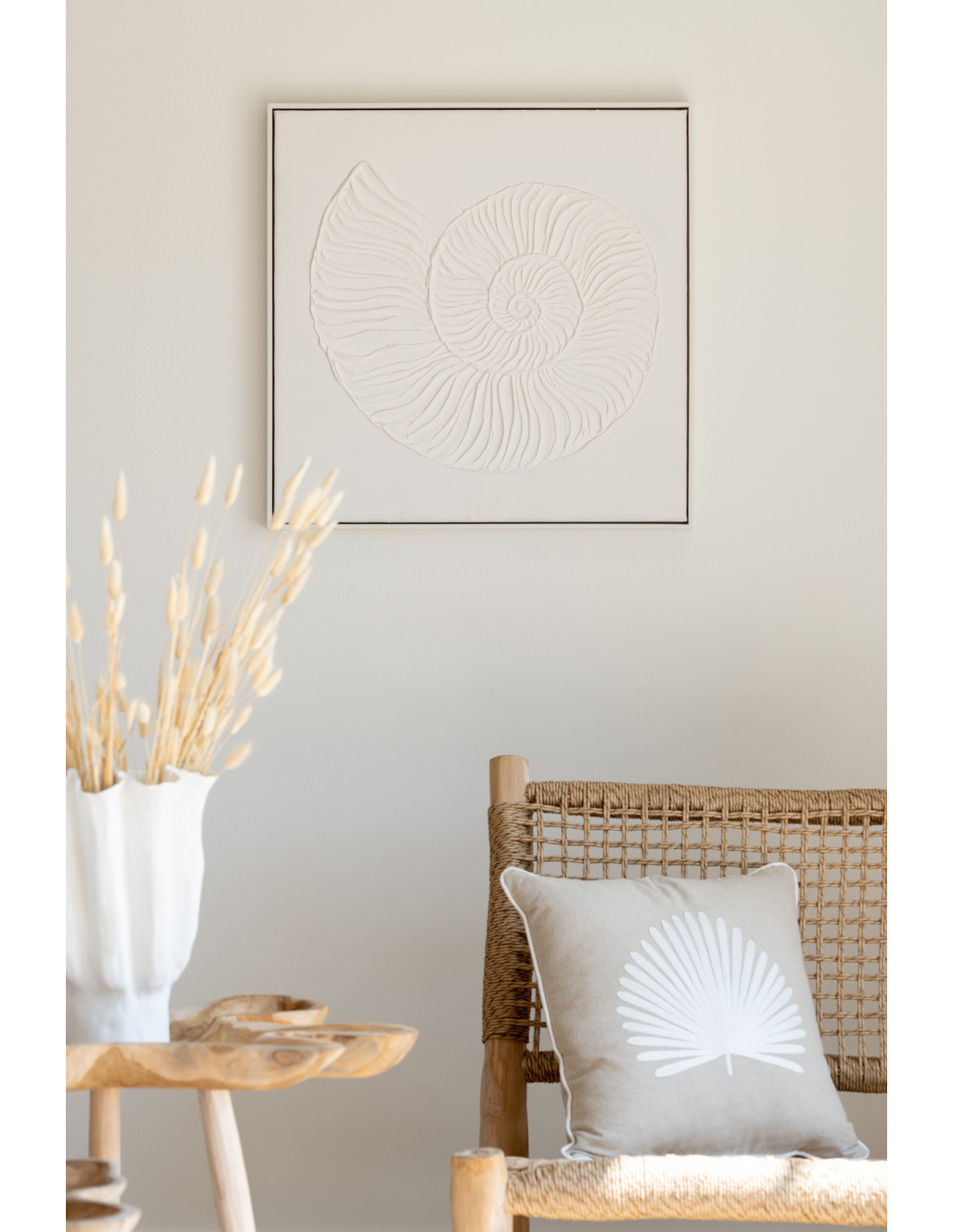 Toile murale peinte Coquillage Cadre bois blanc Spirani