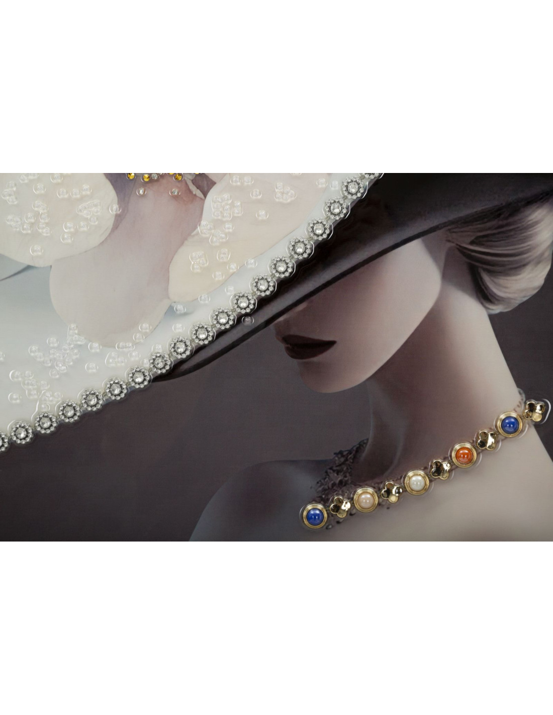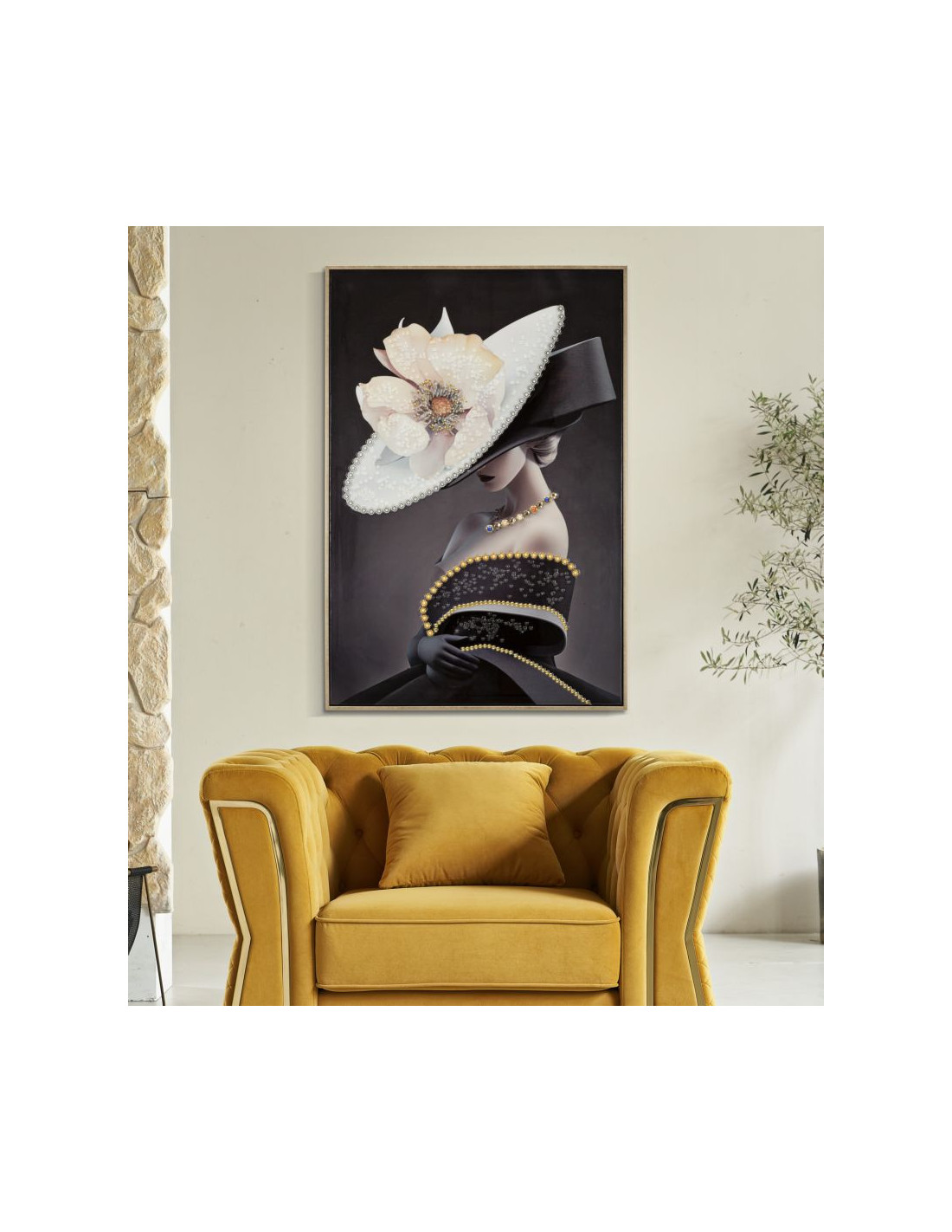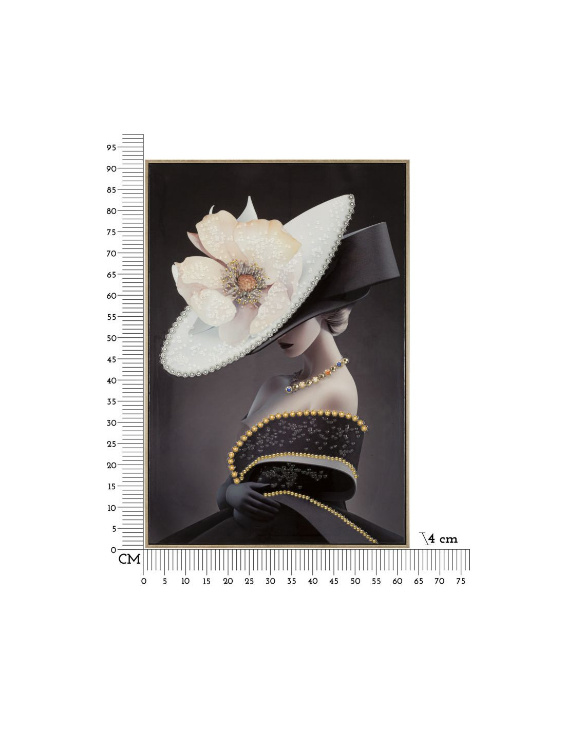 Toile murale peinte Femme avec chapeau 62x92 Cadre doré Wien B