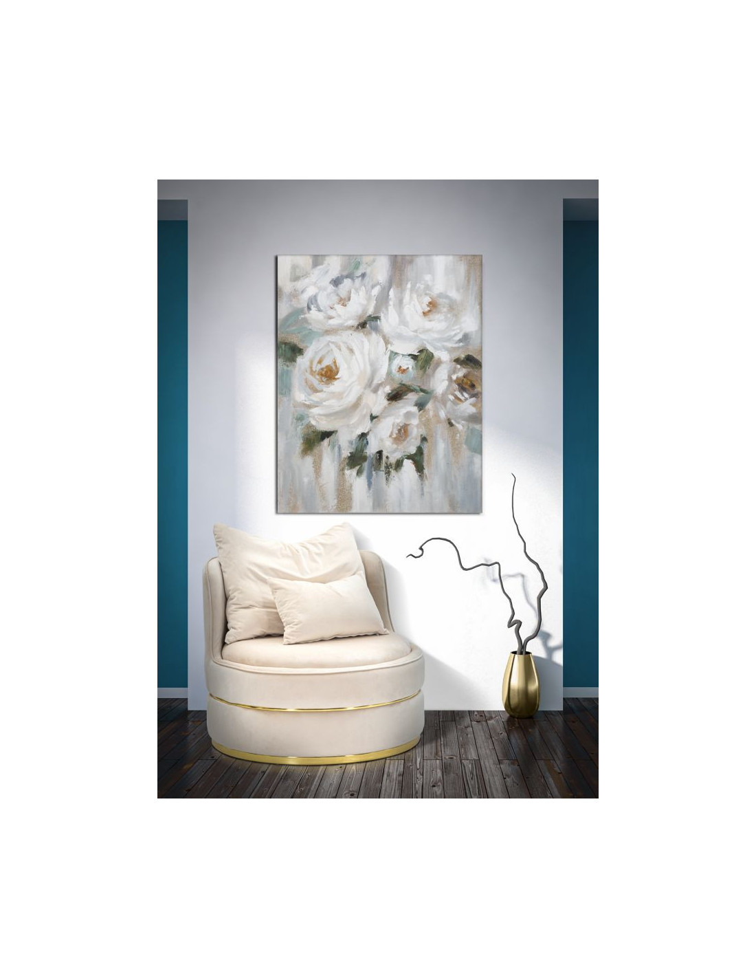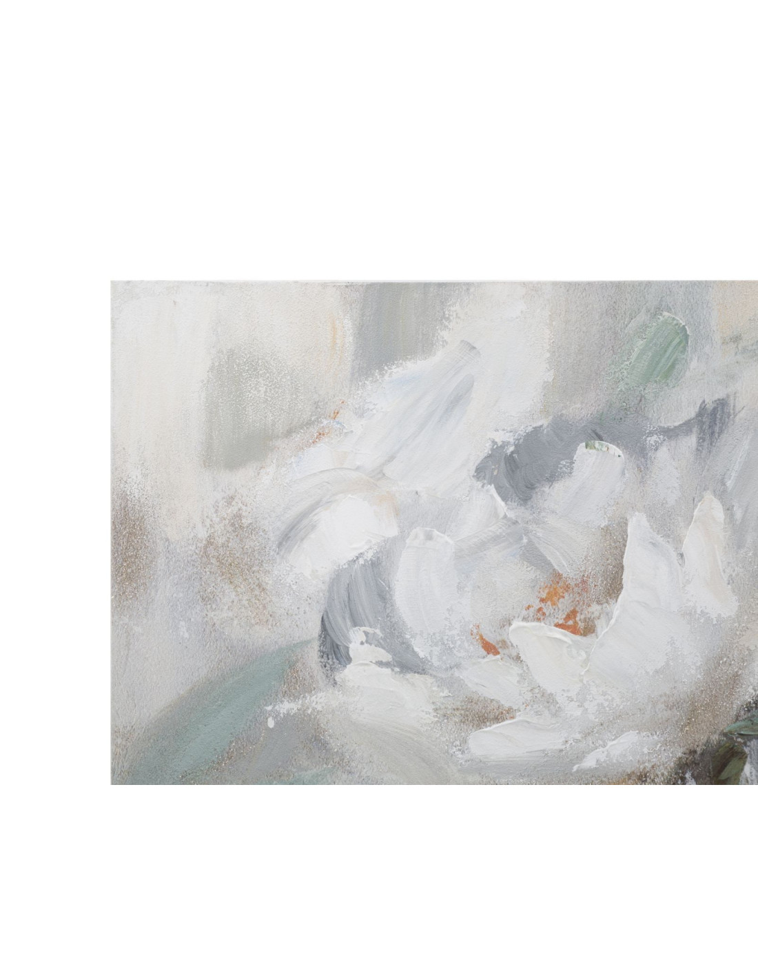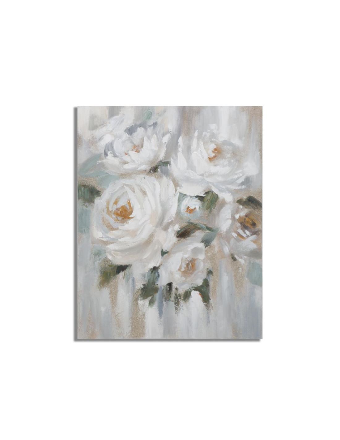 Toile murale peinte Fleurs Blanc Vert 80x100 Flower