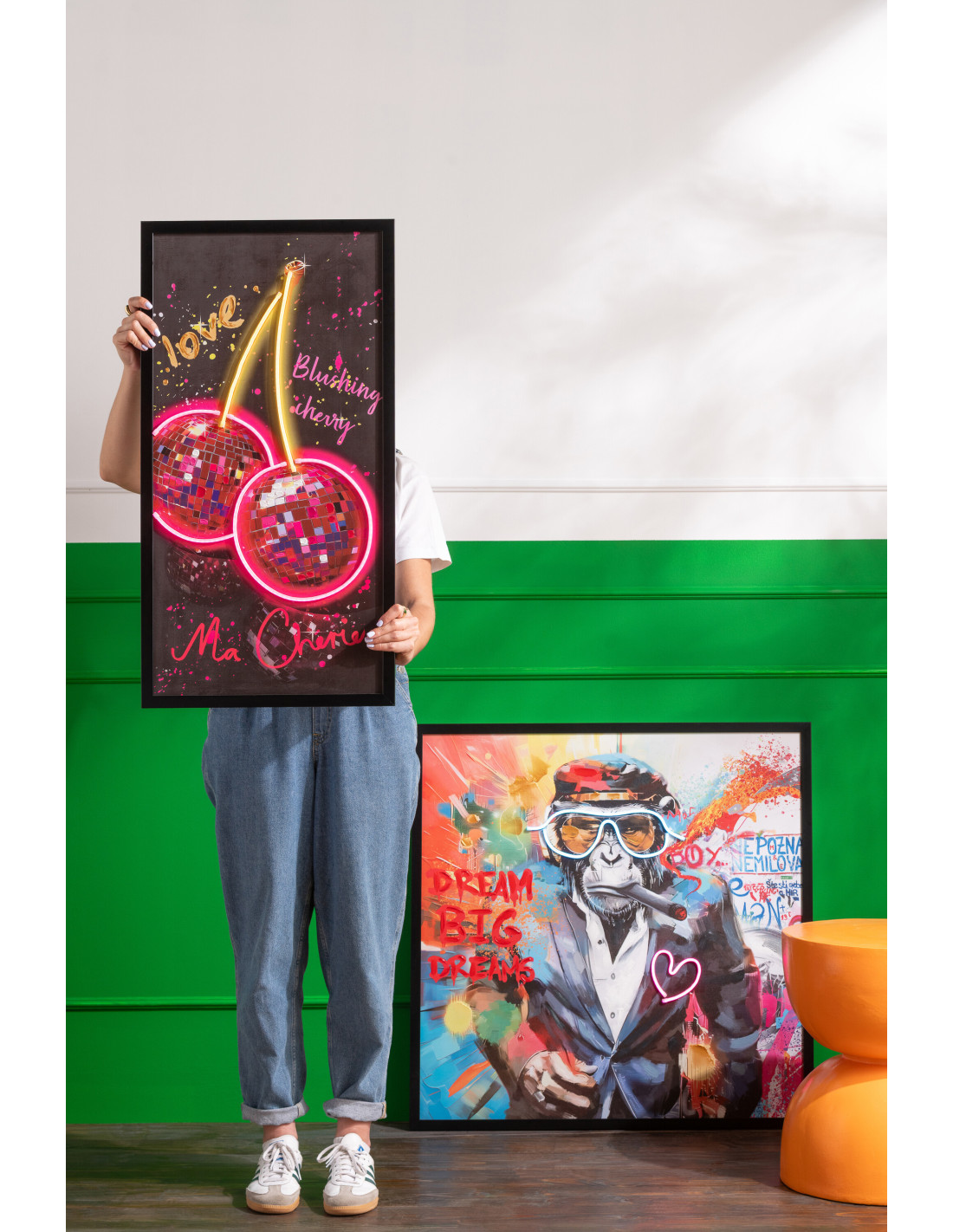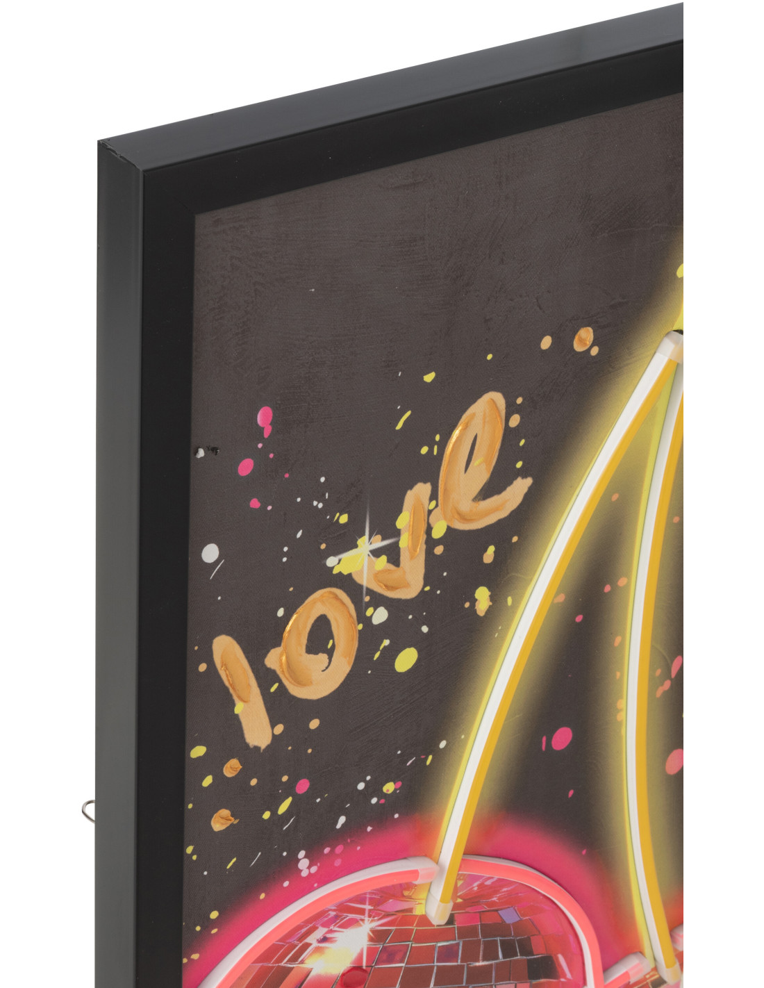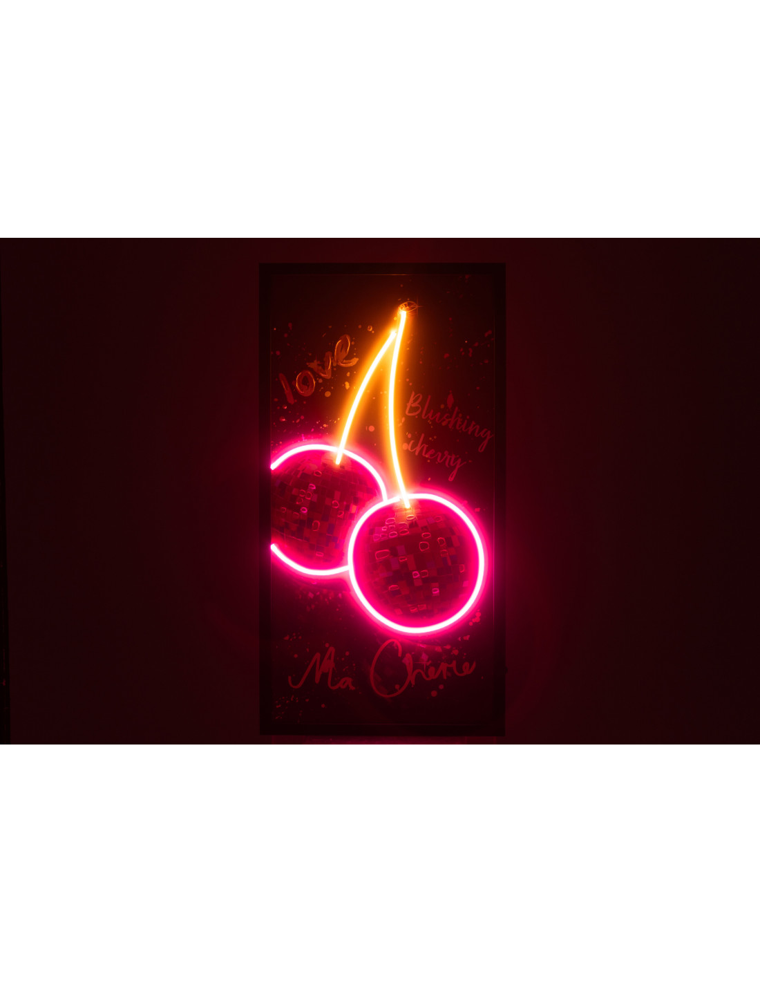 Toile murale peinte lumineuse design Cerises Disco Cadre en bois noir Néonyo