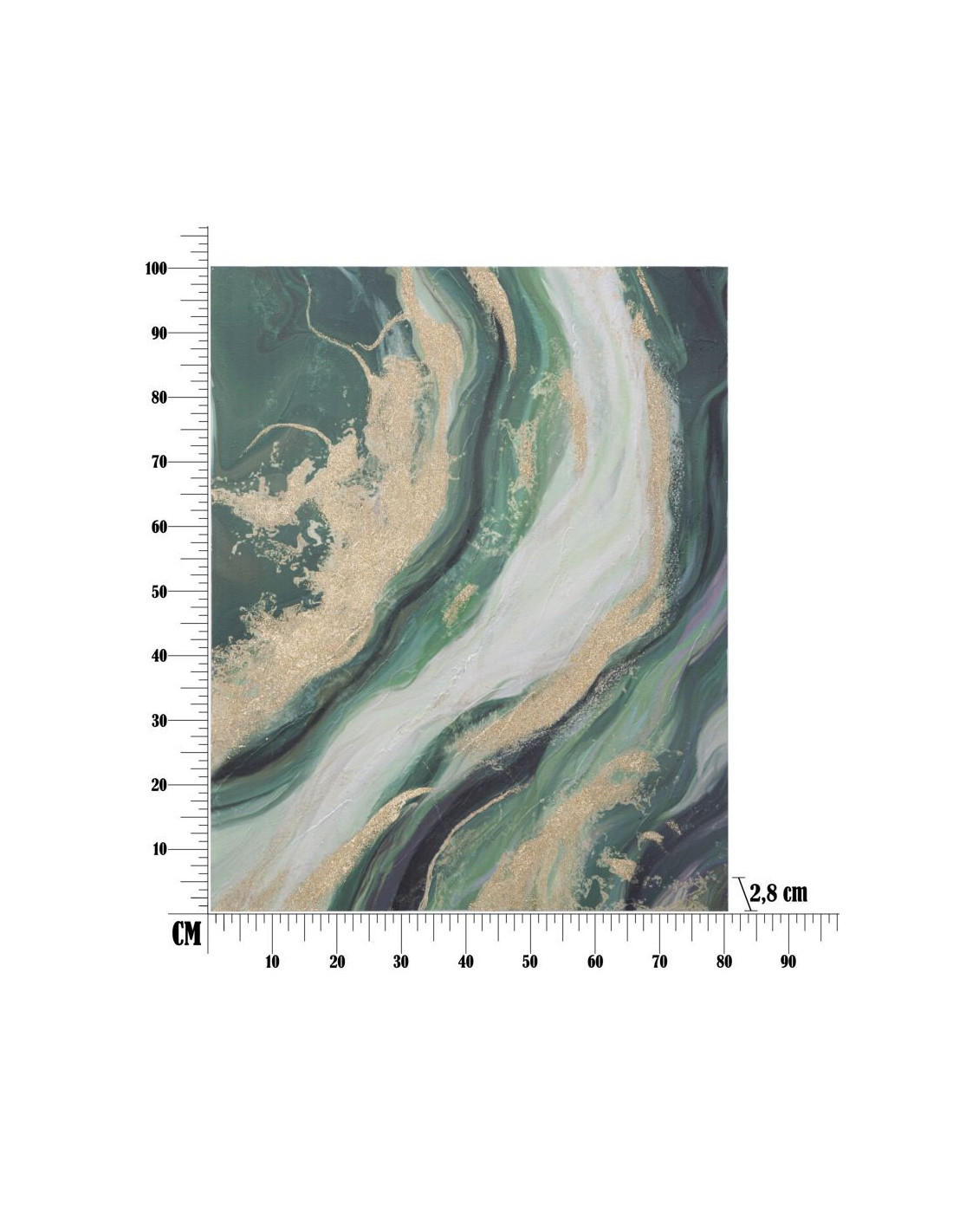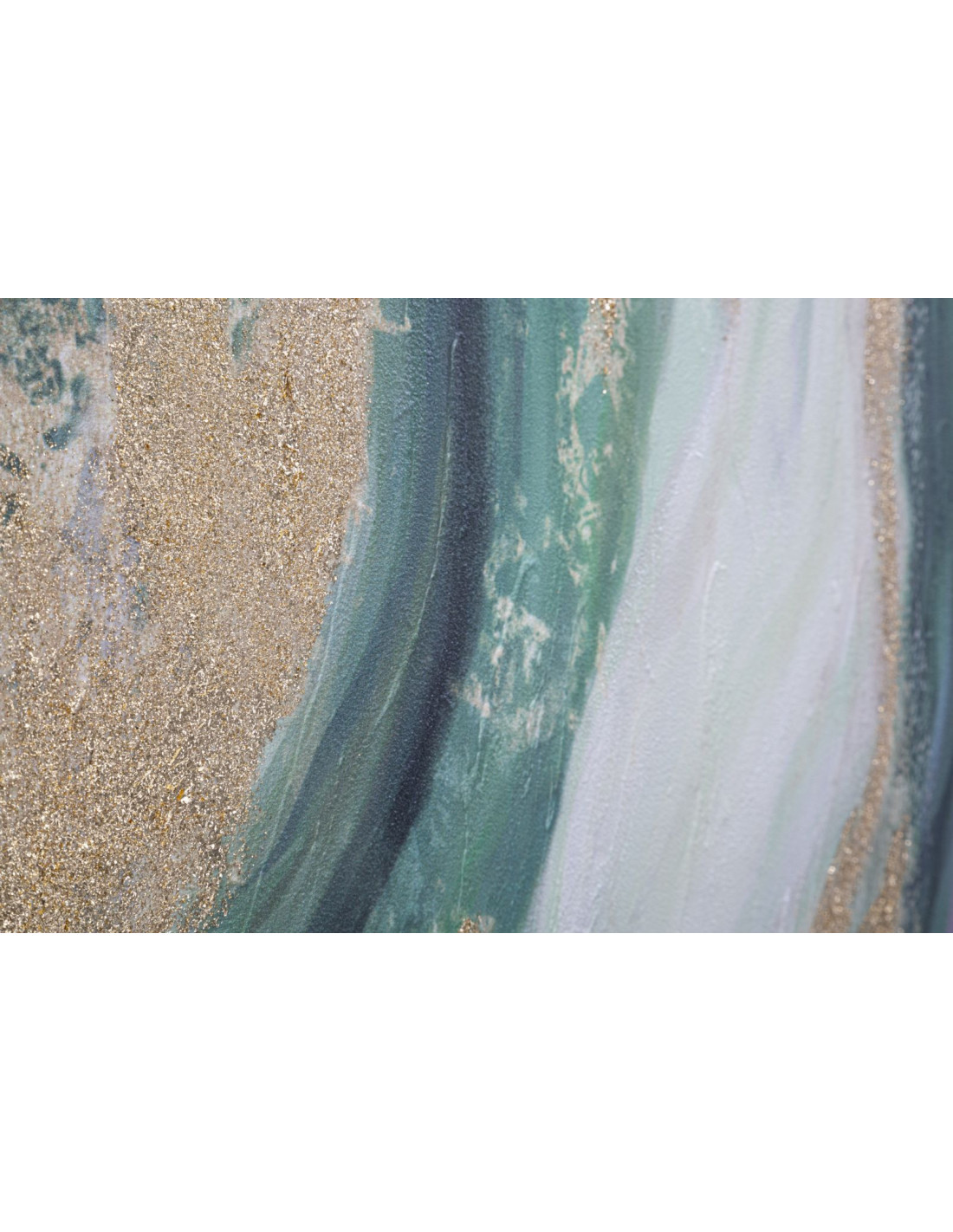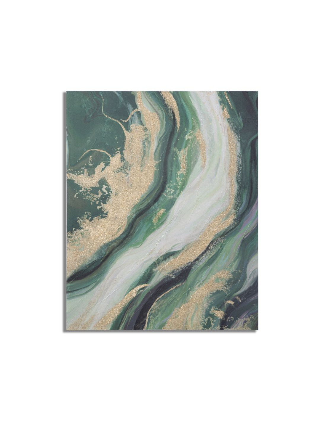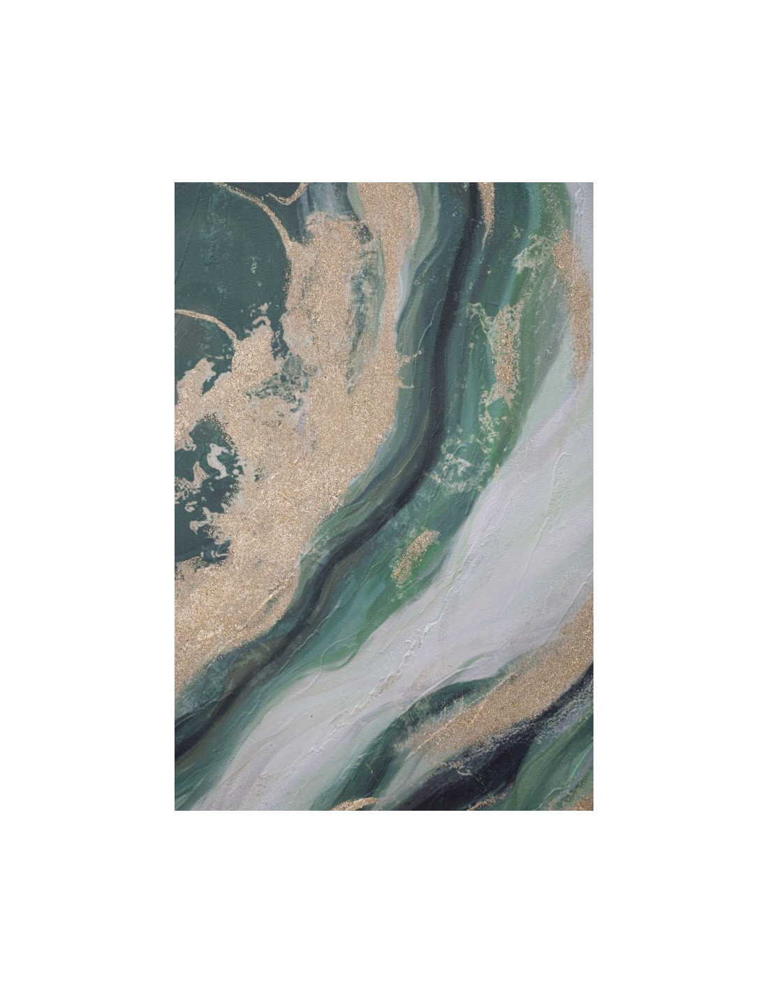 Toile murale peinte Motif abstrait Vert Blanc Doré 90x100 Greenery
