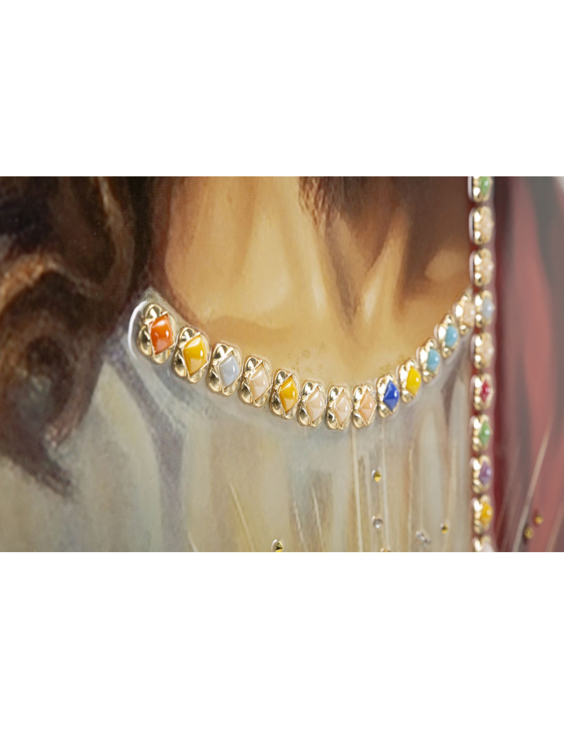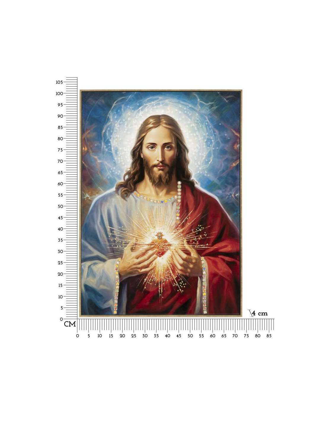 Toile murale peinte religieuse Jésus au Sacré-coeur 72x102 avec cadre doré Jesus