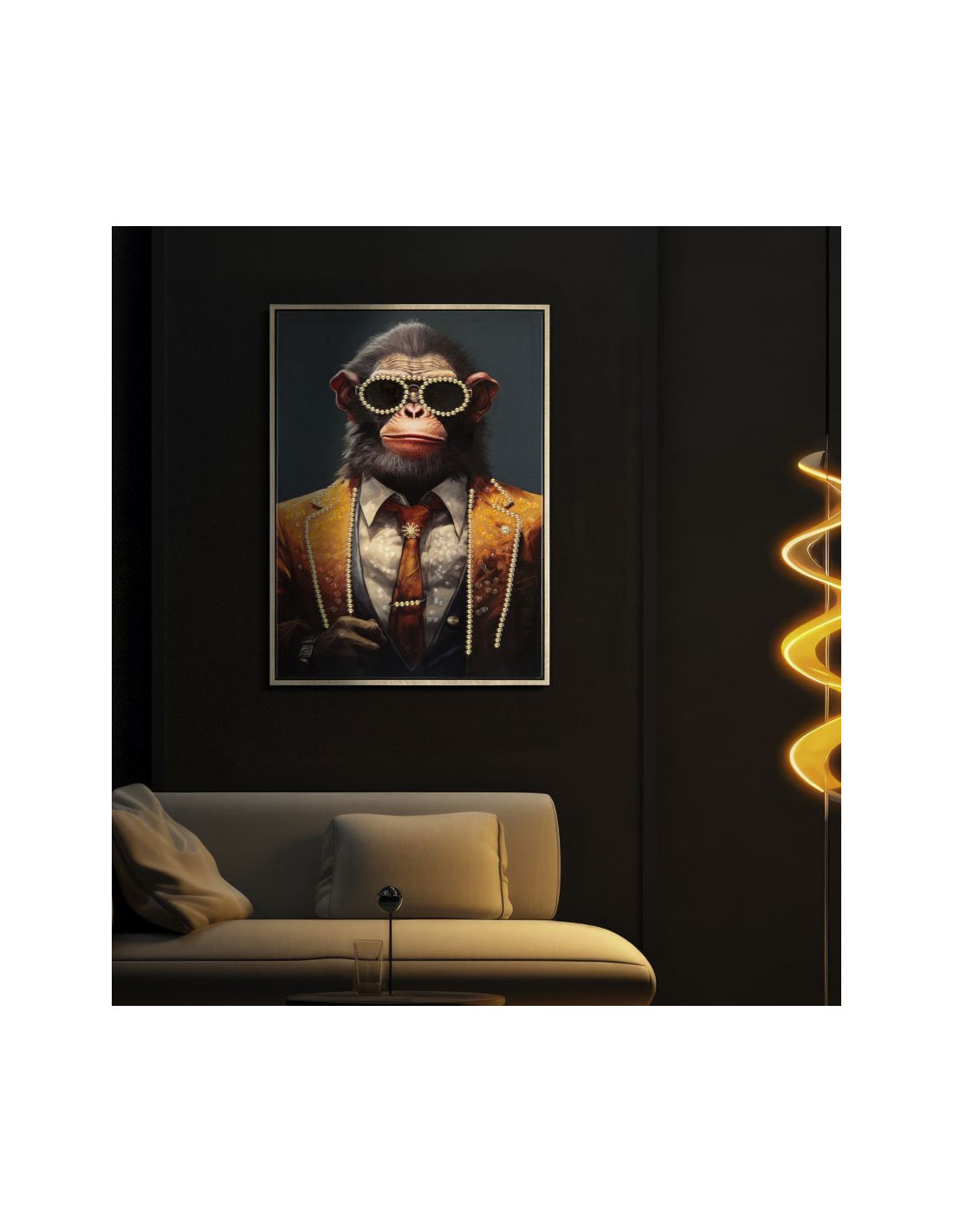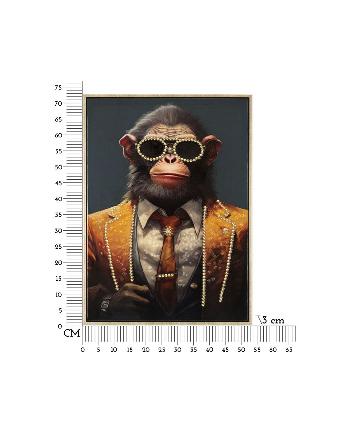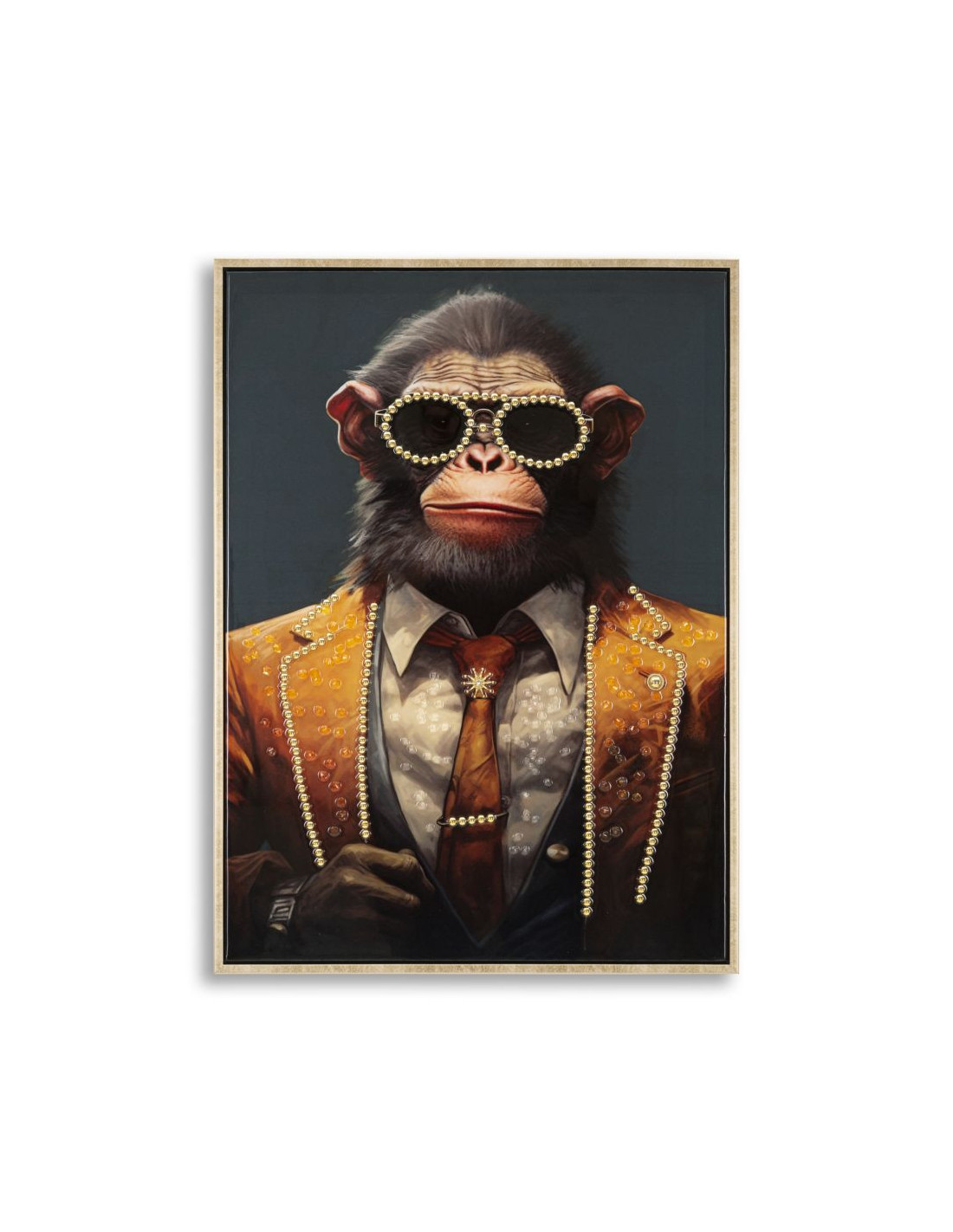Toile murale peinte Singe anthropomorphe 52x72 Cadre doré Monky