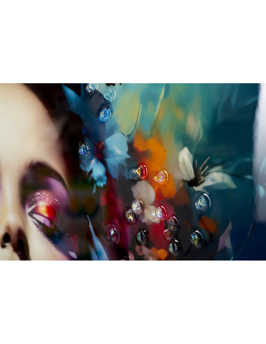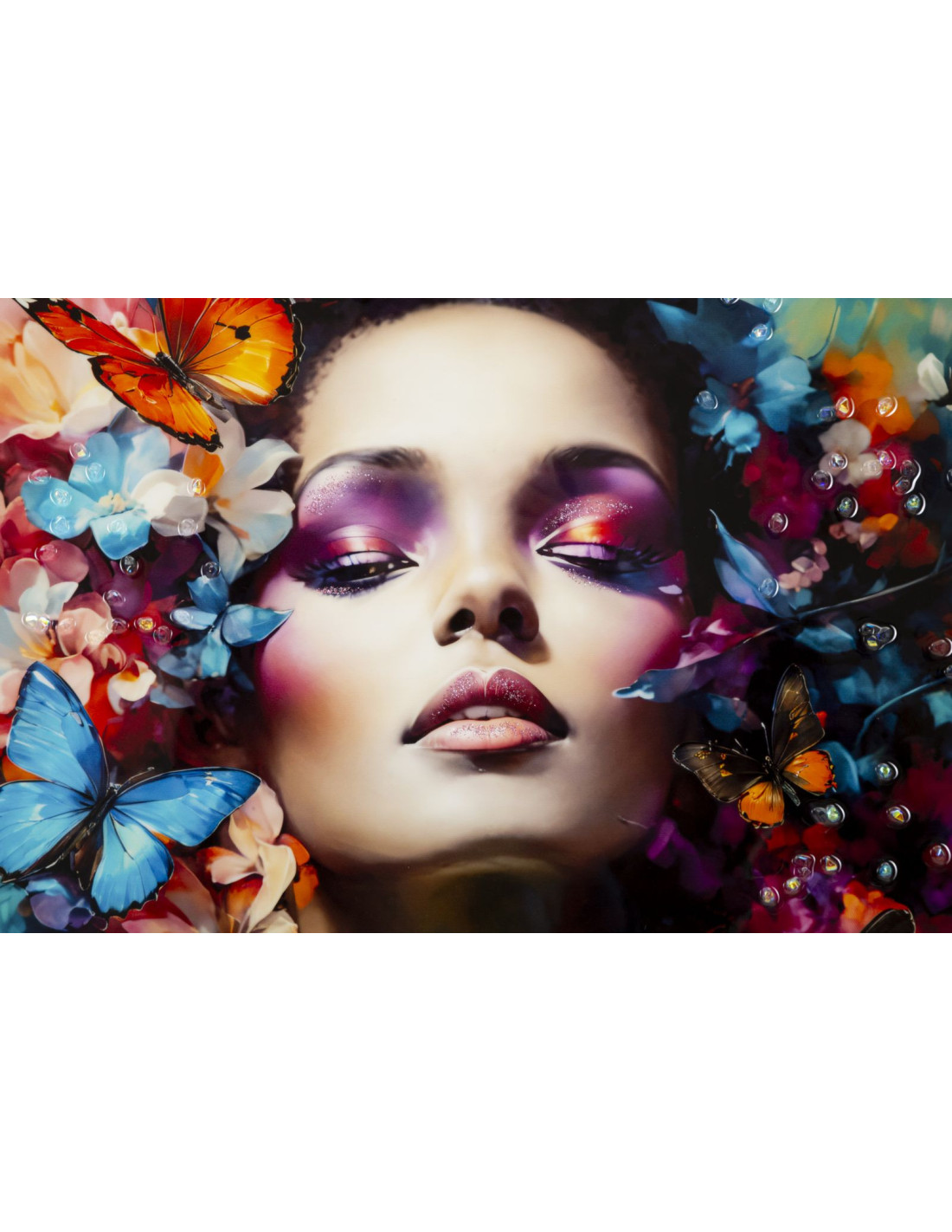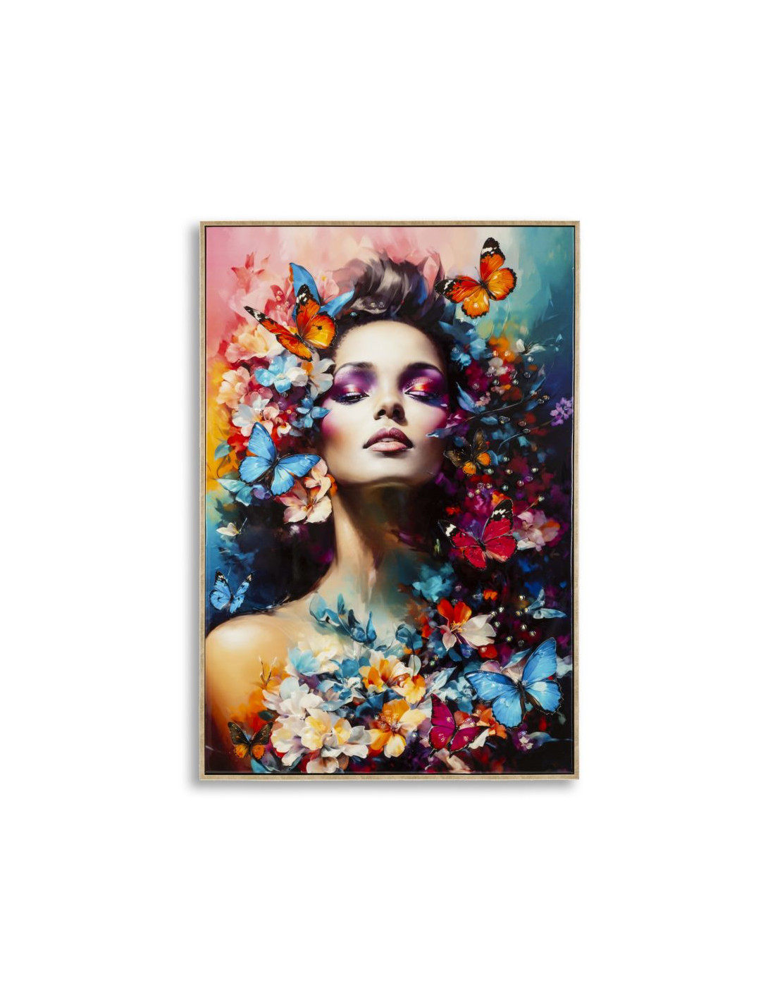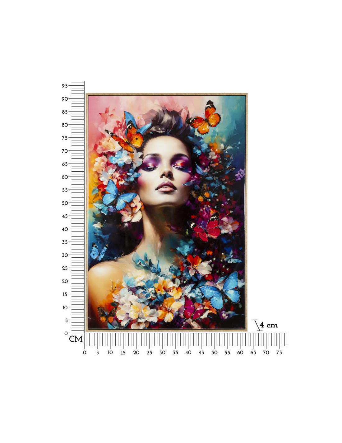 Toile murale peinte sombre Femme Papillons 62x92 avec cadre doré Marty