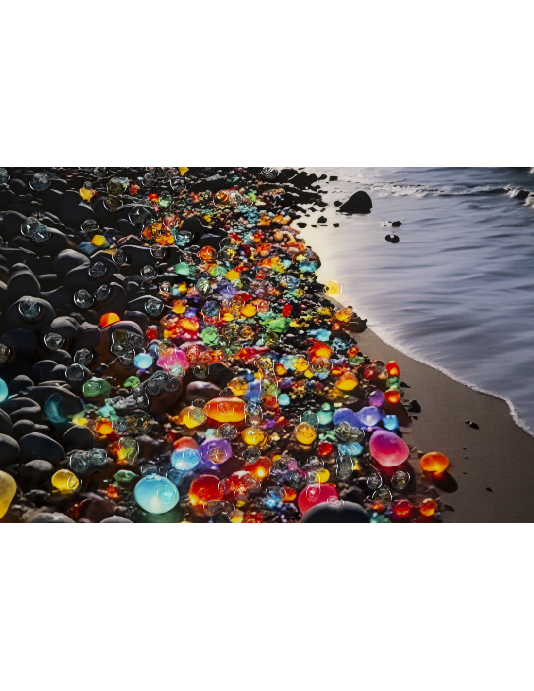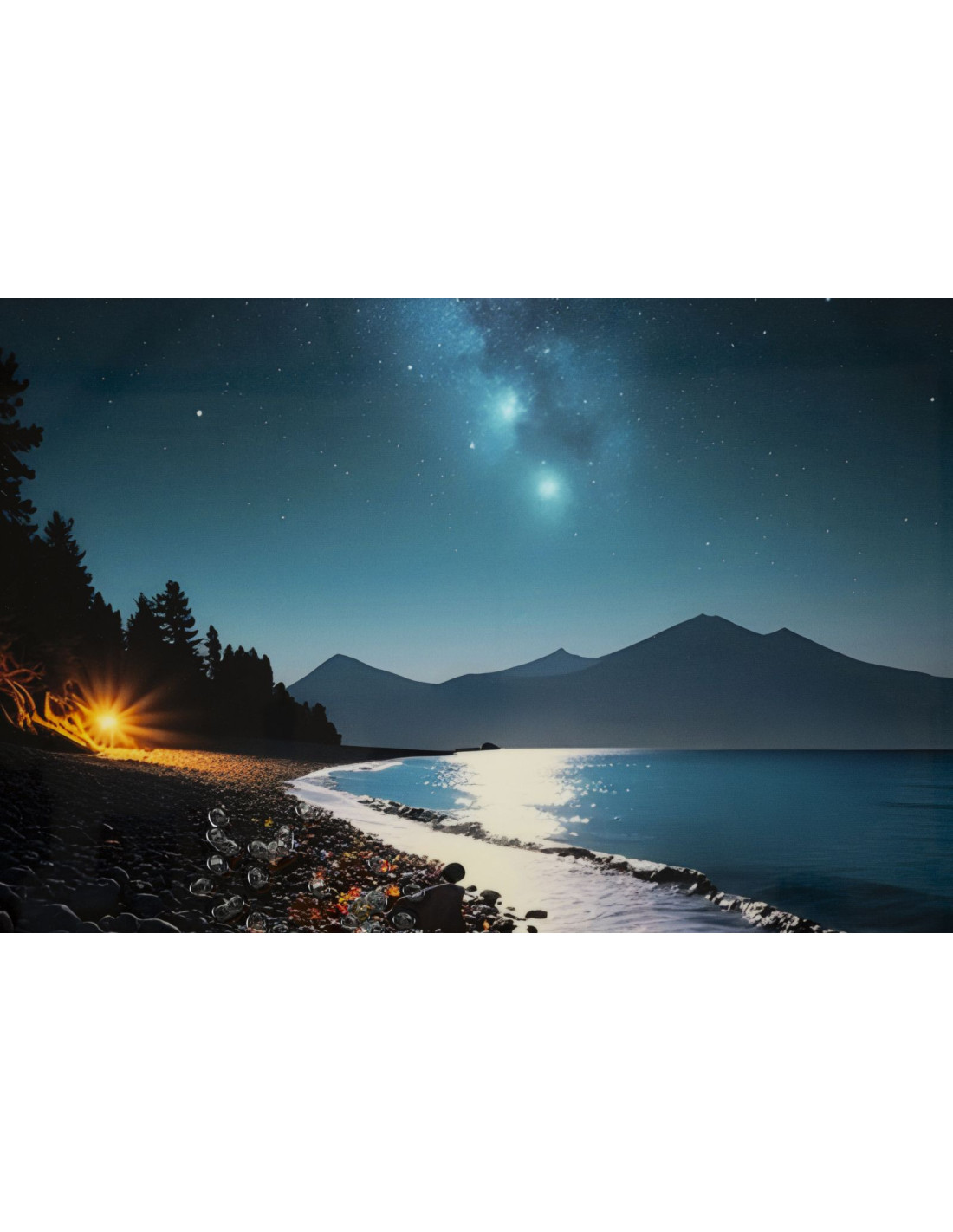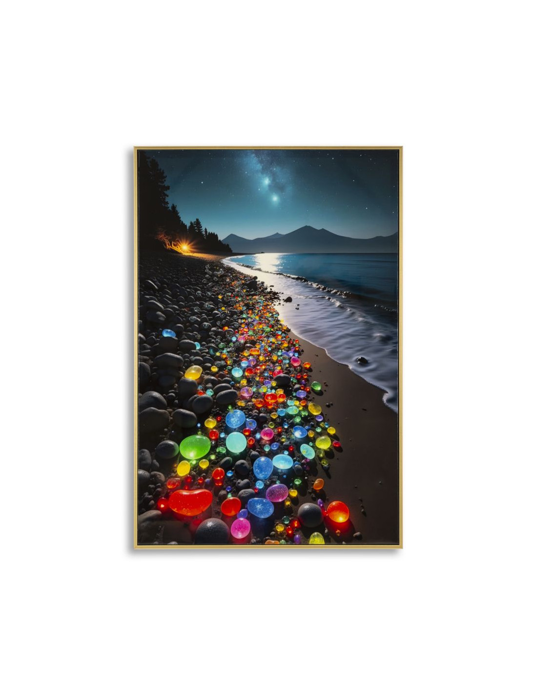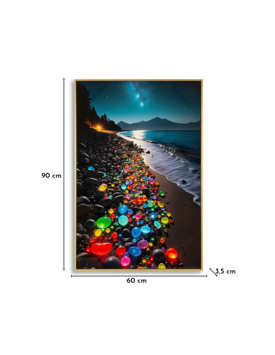 Toile murale Plage nocturne avec strass Cadre doré 60x90 Finition laquée Colors B
