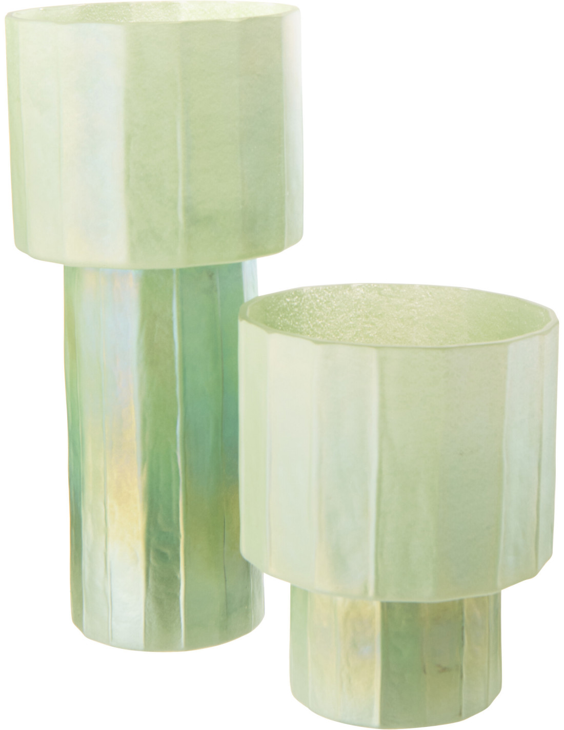 Le verre nervuré crée un relief discret qui capte la lumière et révèle des nuances délicates de vert.