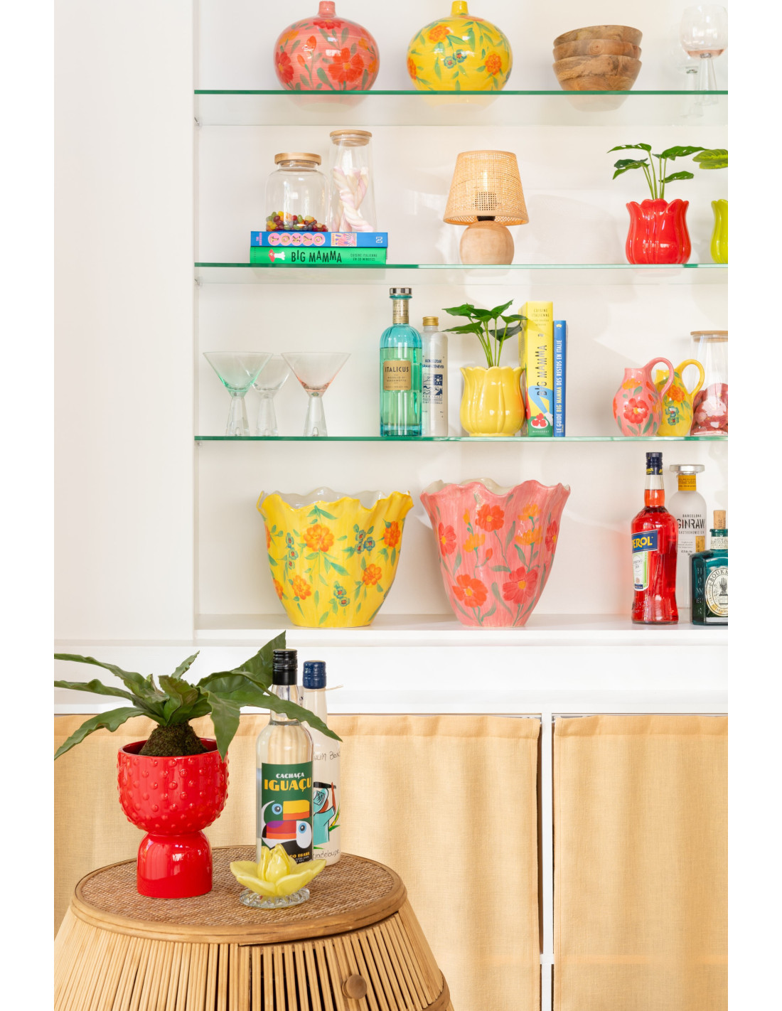 Vase bohème Boule 21 cm en Argile Jaune Rose Motif fleurs Alegria (Lot de 2) - 1
