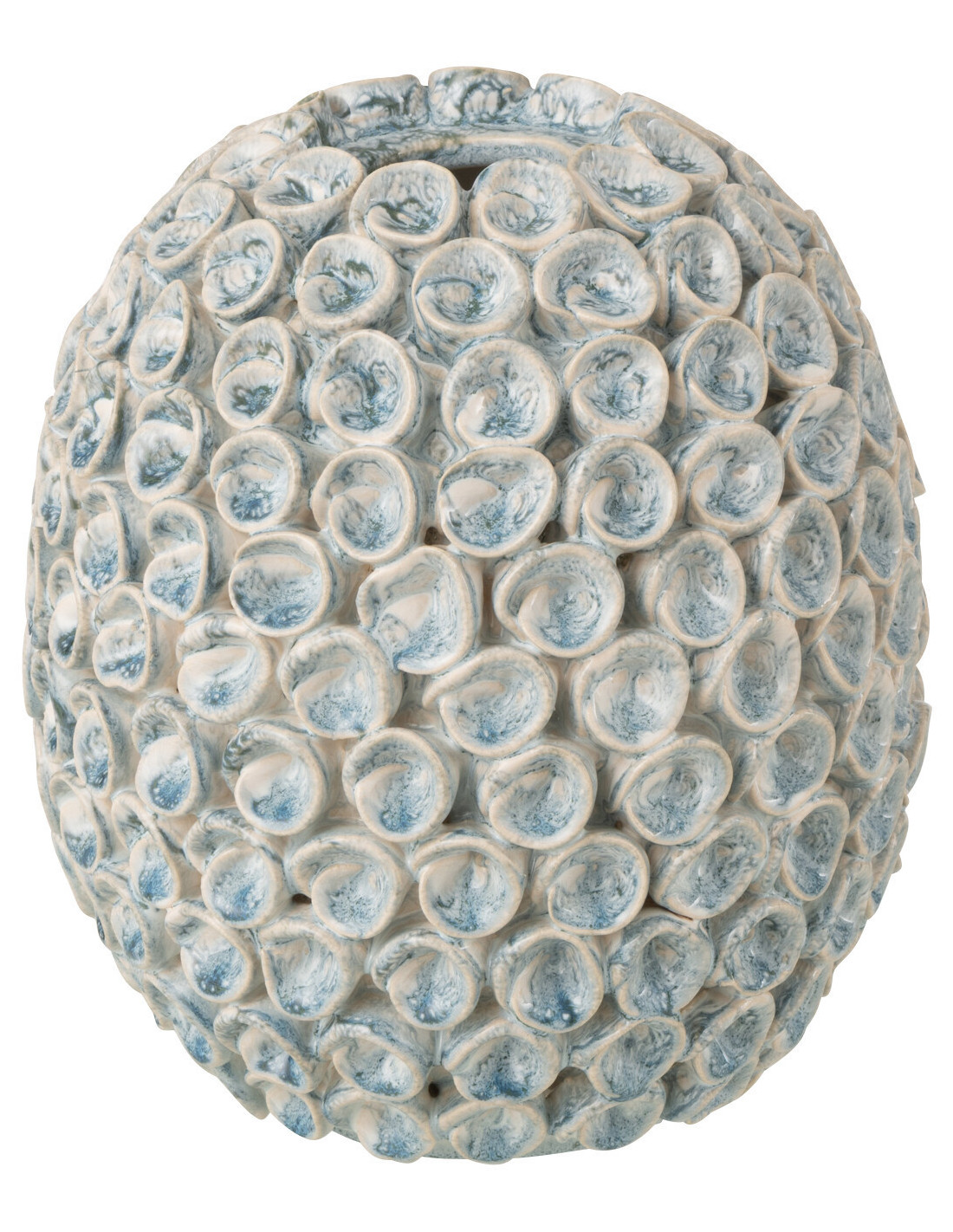 Vase Bord de mer Coquillages Boule H 22 cm Argile Bleu clair Blanc Milan