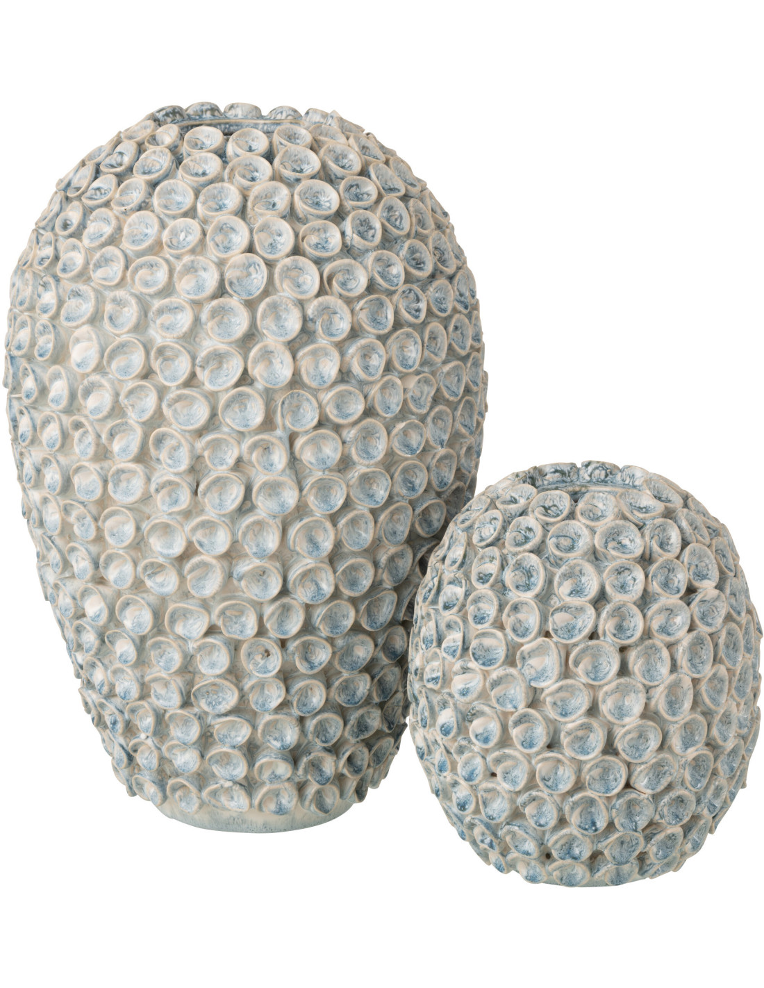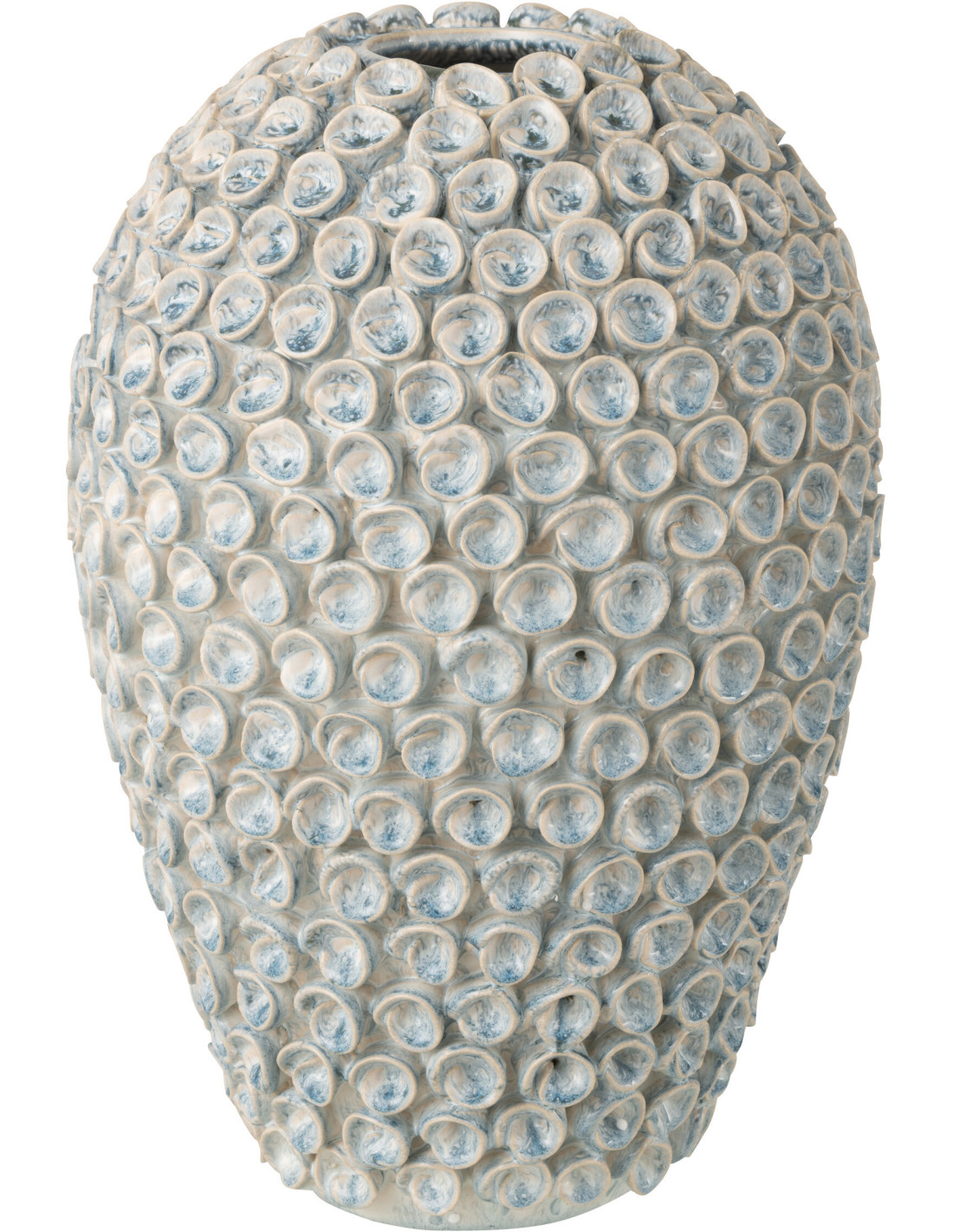 Vase Bord de mer Coquillages Ovale H 39 cm Argile Bleu clair Blanc Milan