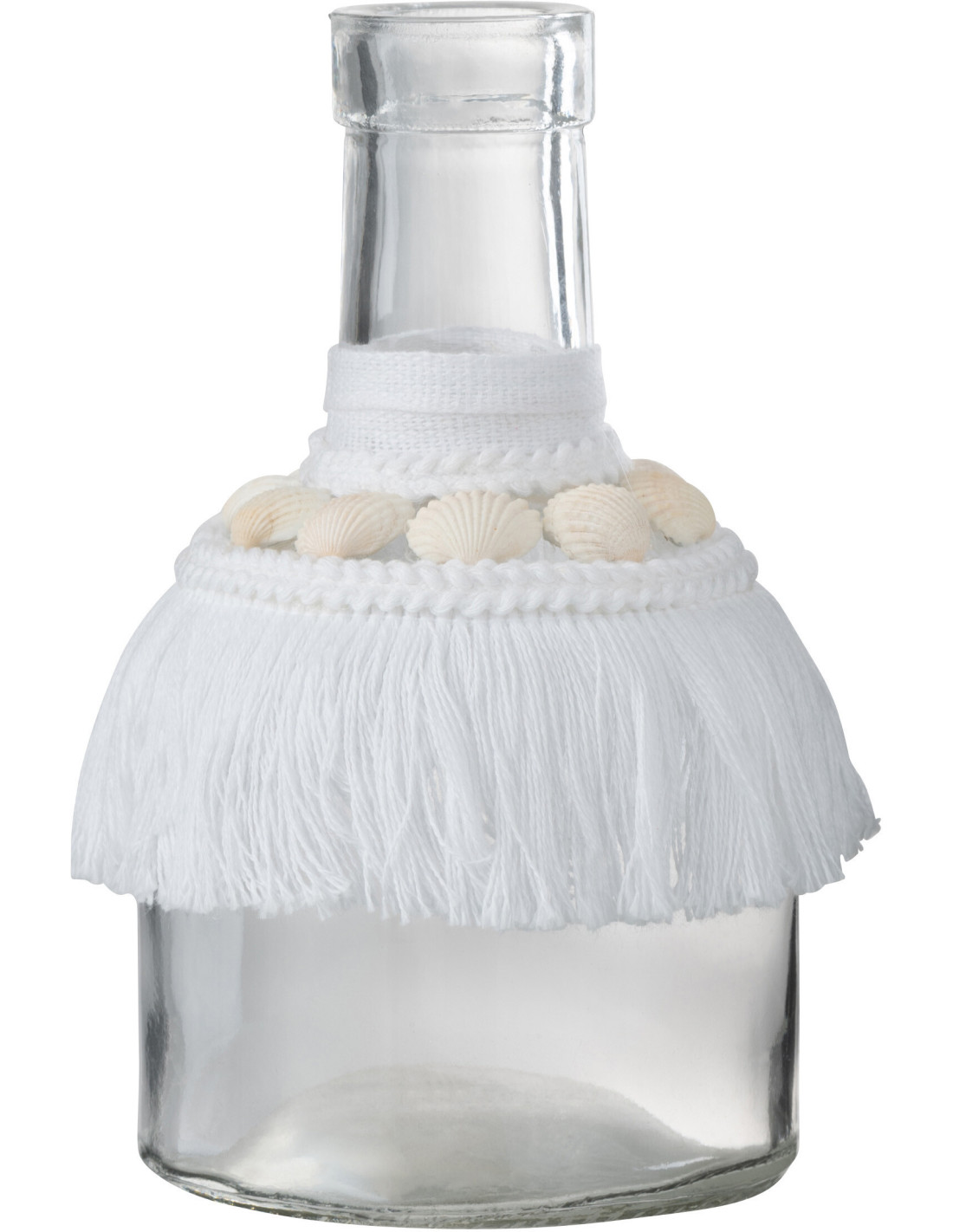 Vase Bouteille Holiday Hauteur 15 cm en Verre Transparent Polyester Blanc Avec coquillages