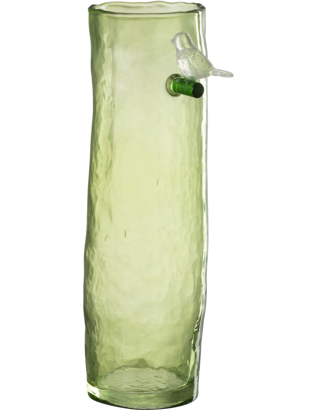 Vase Cyclindrique Oiseau sur branche Hauteur 32 cm en Verre Vert Aves - 1