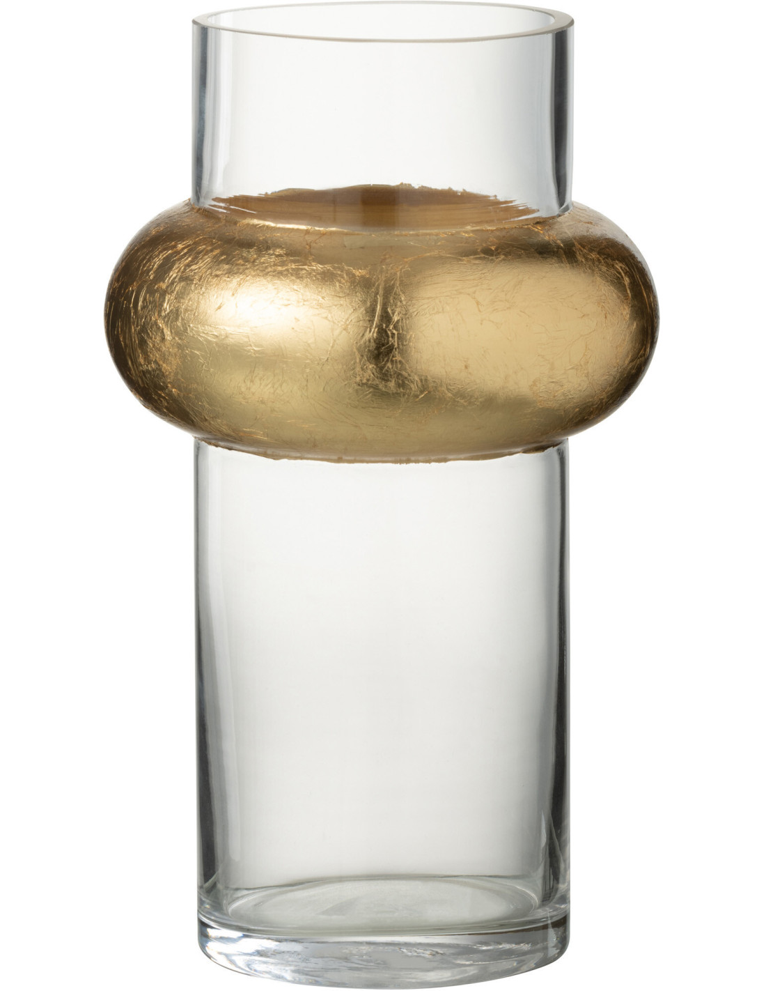 Vase Cylindrique Hoop Hauteur 25 cm en Verre Transparent Doré Anneau Haut