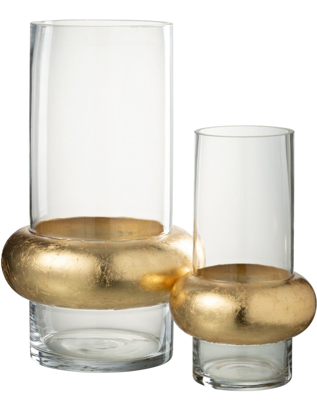 Vase Cylindrique Hoop Hauteur 35 cm en Verre Transparent Doré Anneau Bas