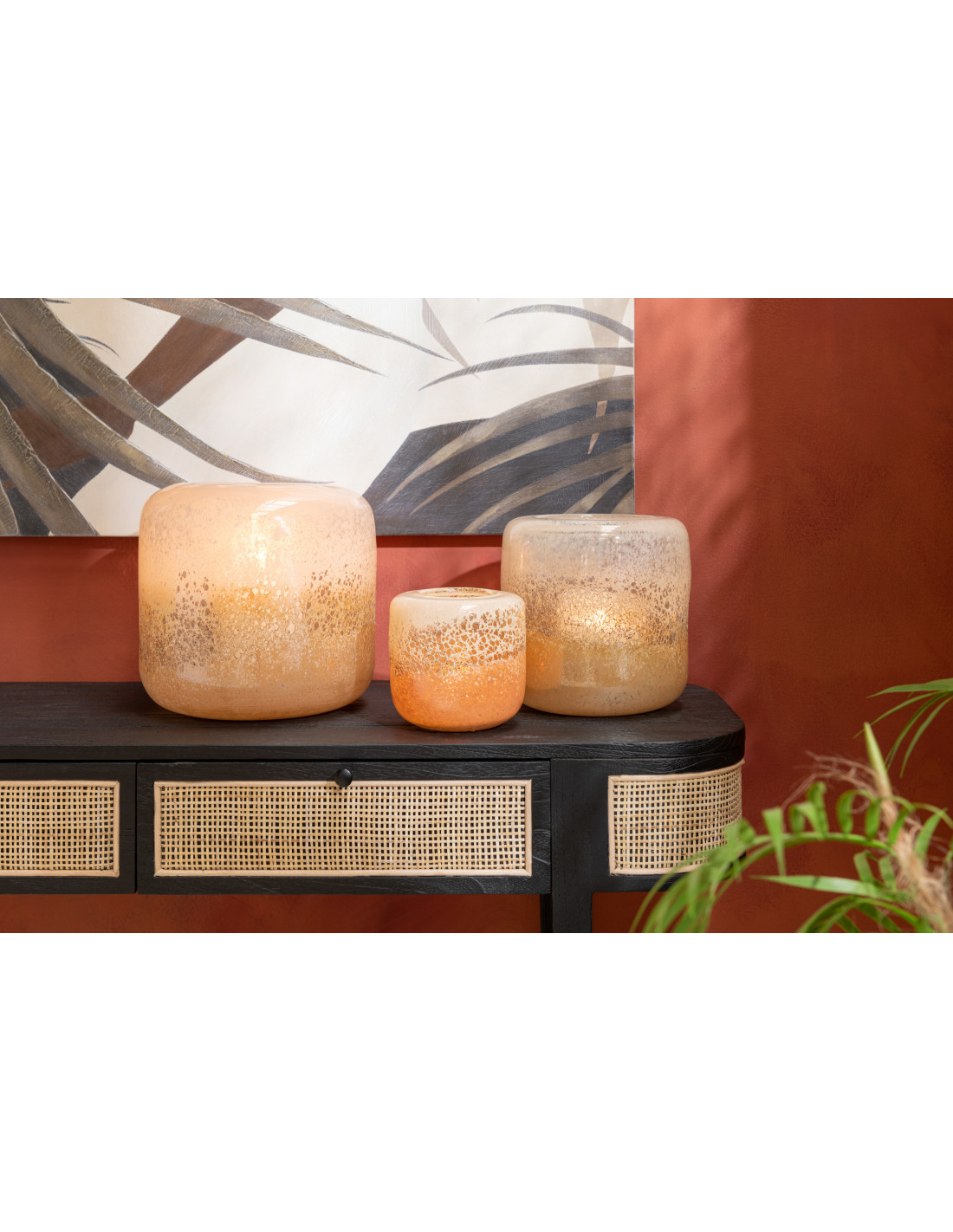 Vase Rond Juliette Hauteur 10 cm en Verre Orange Rose Effet irisé