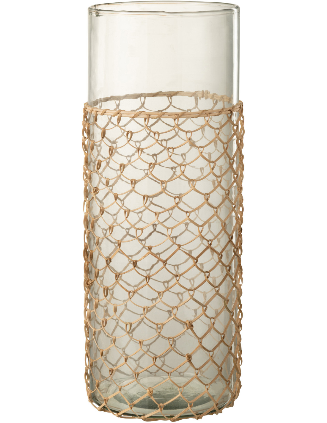 Vase Cylindrique Pesci Hauteur 40 cm en Verre Transparent Jute Naturel