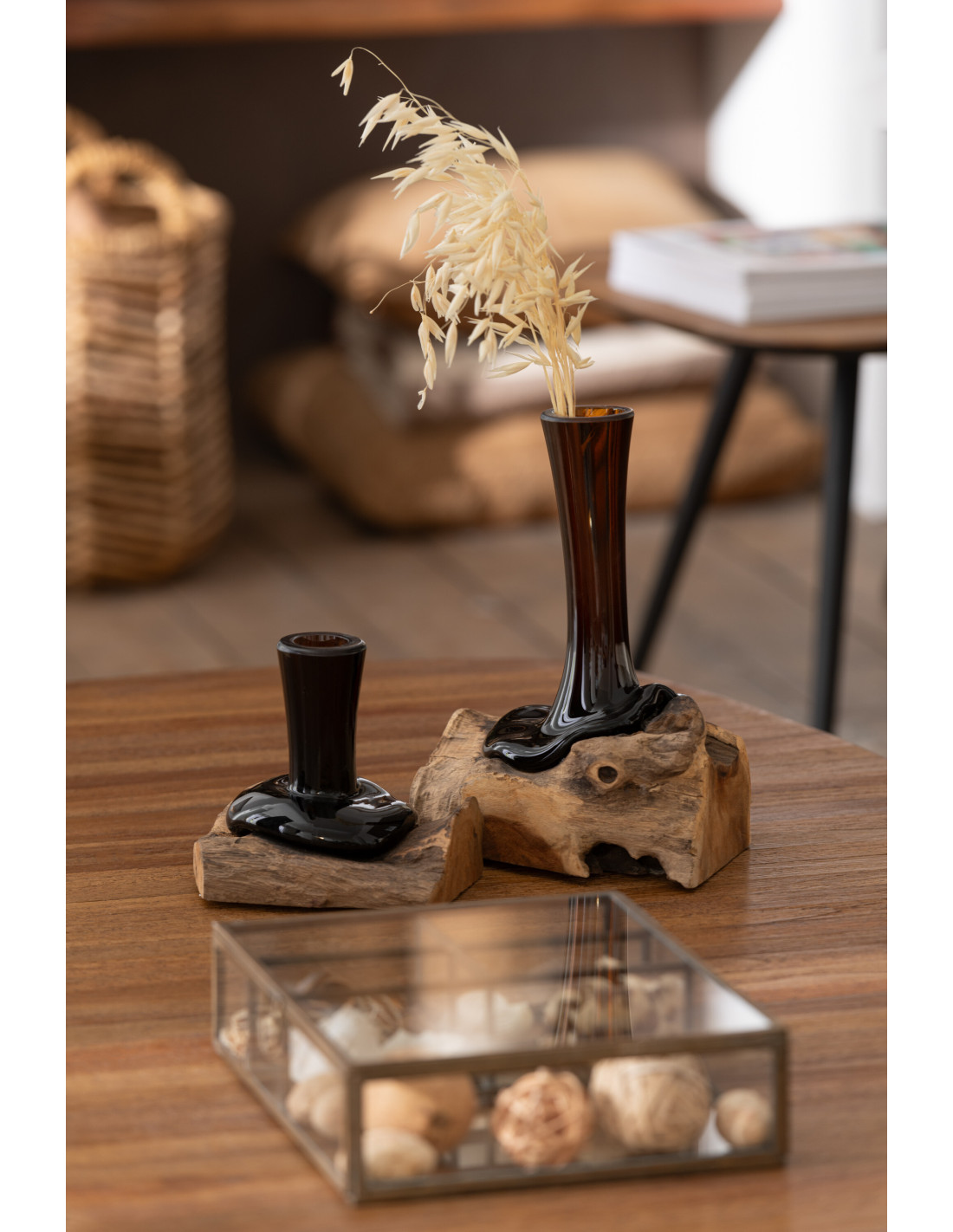 Vase Cylindrique sur pied Hauteur 30 cm en Verre recyclé Marron Bois de gamal Naturel Gamal - 1